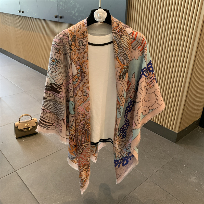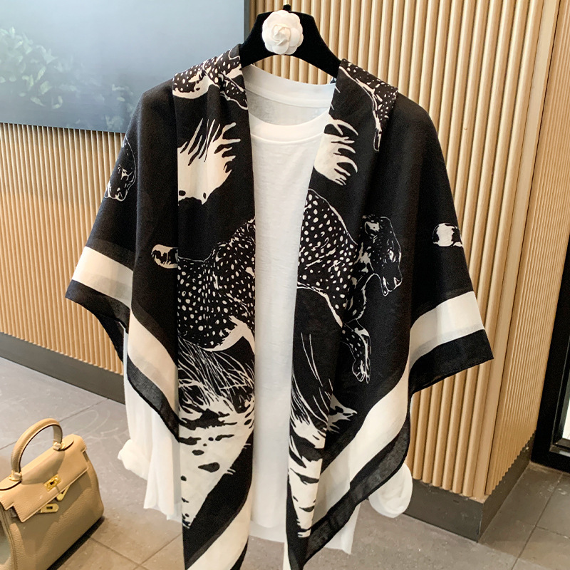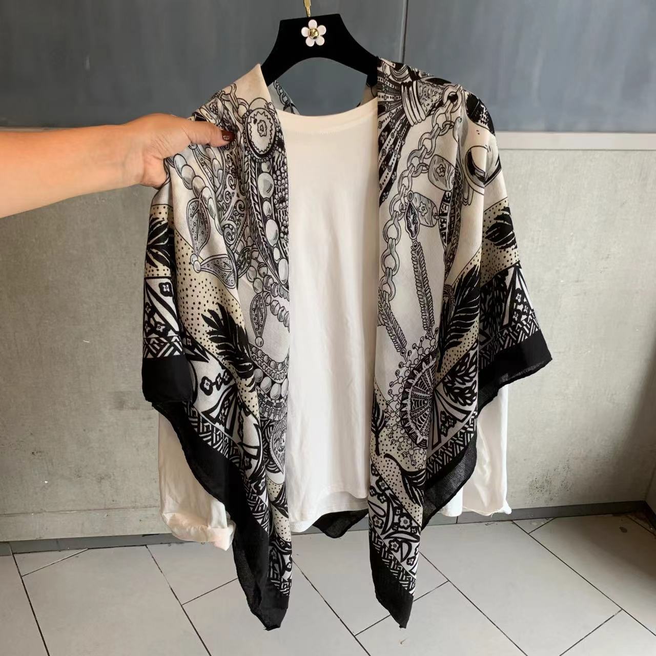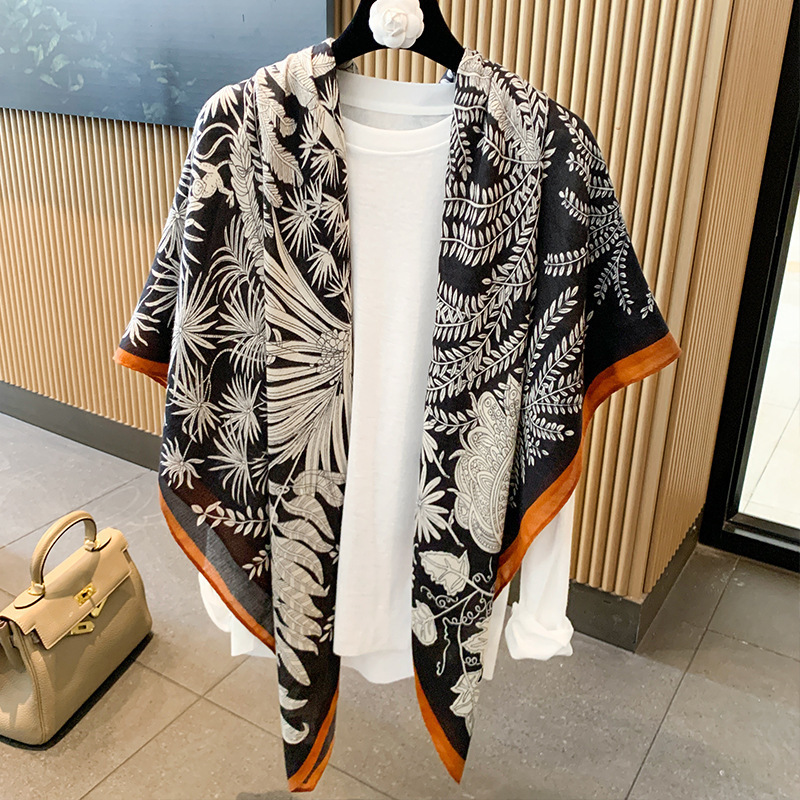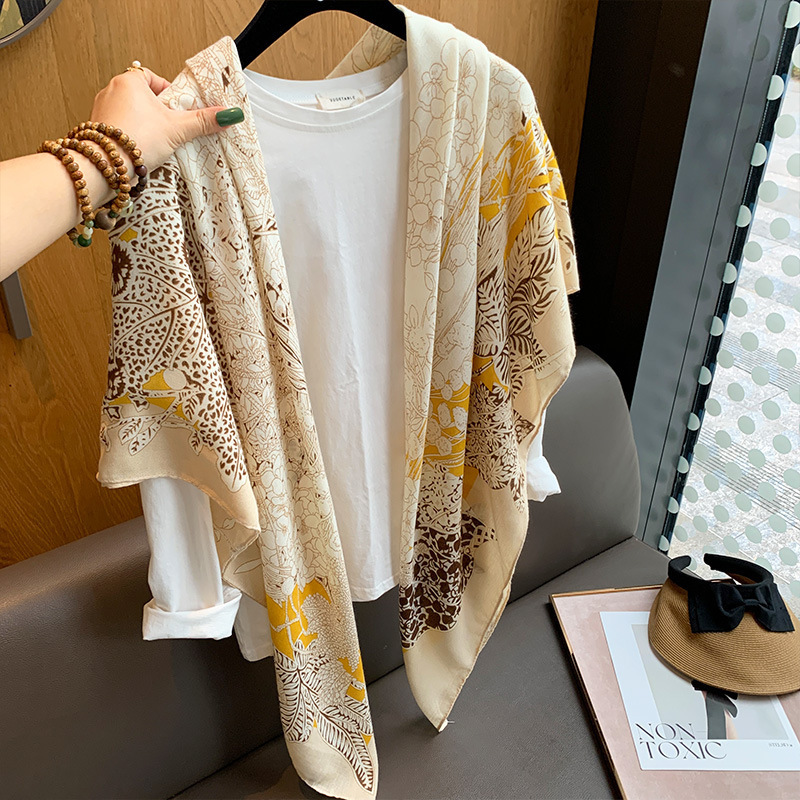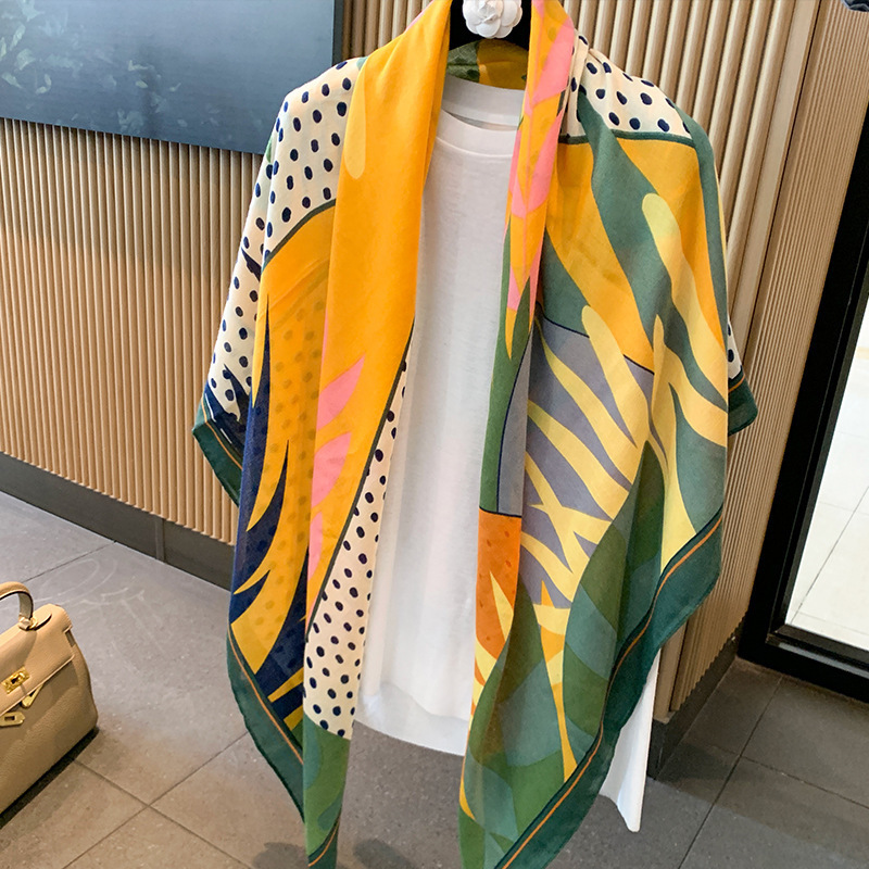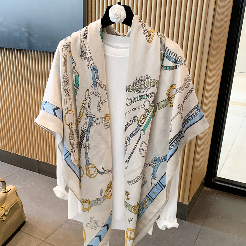 블루 레트로 130 대형 스퀘어 2024 여름 새로운 에어컨 룸 목도리 선스크린 실크 스카프 봄과 가을 리넨 스카프