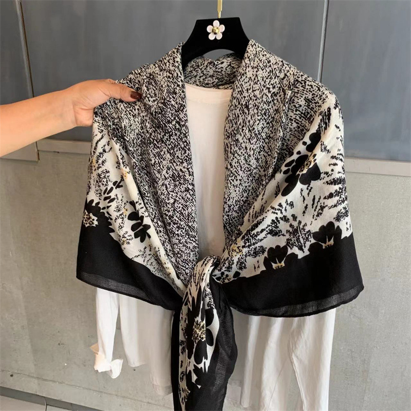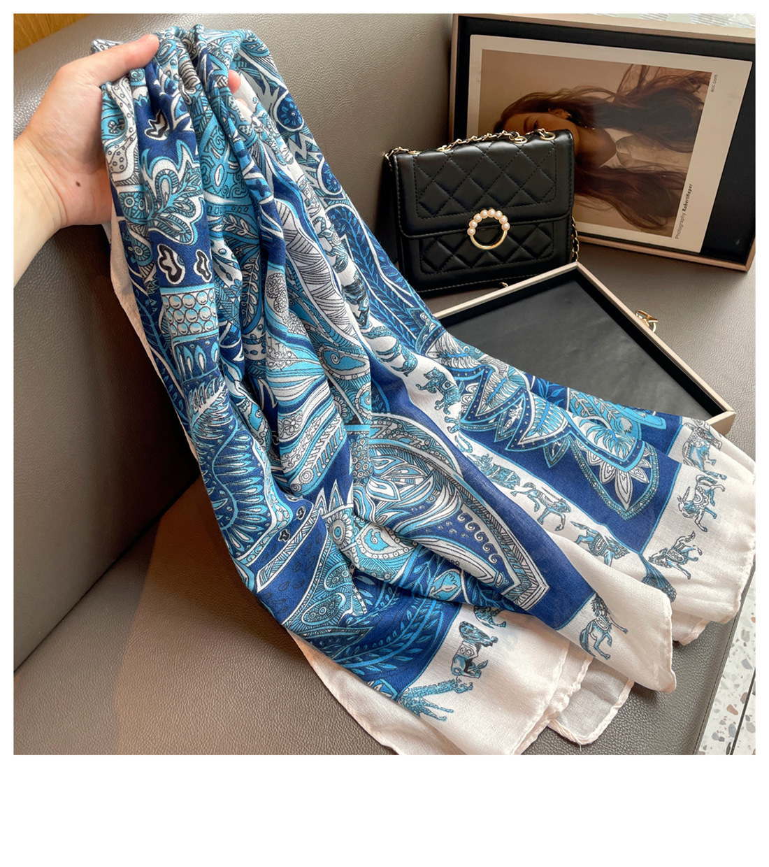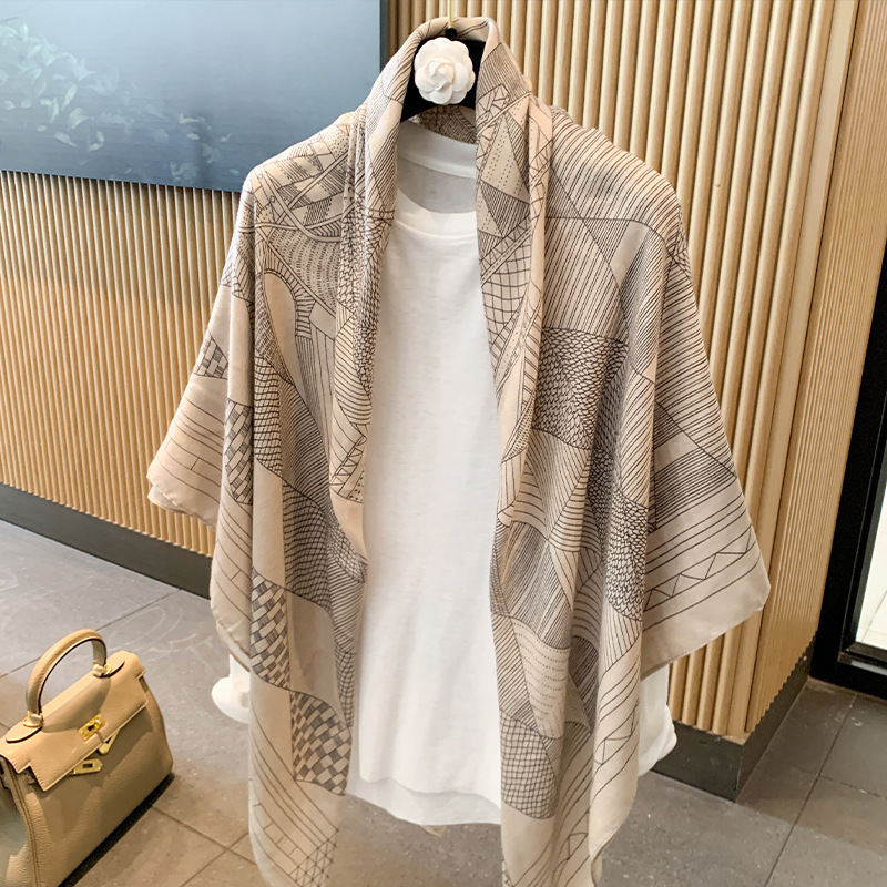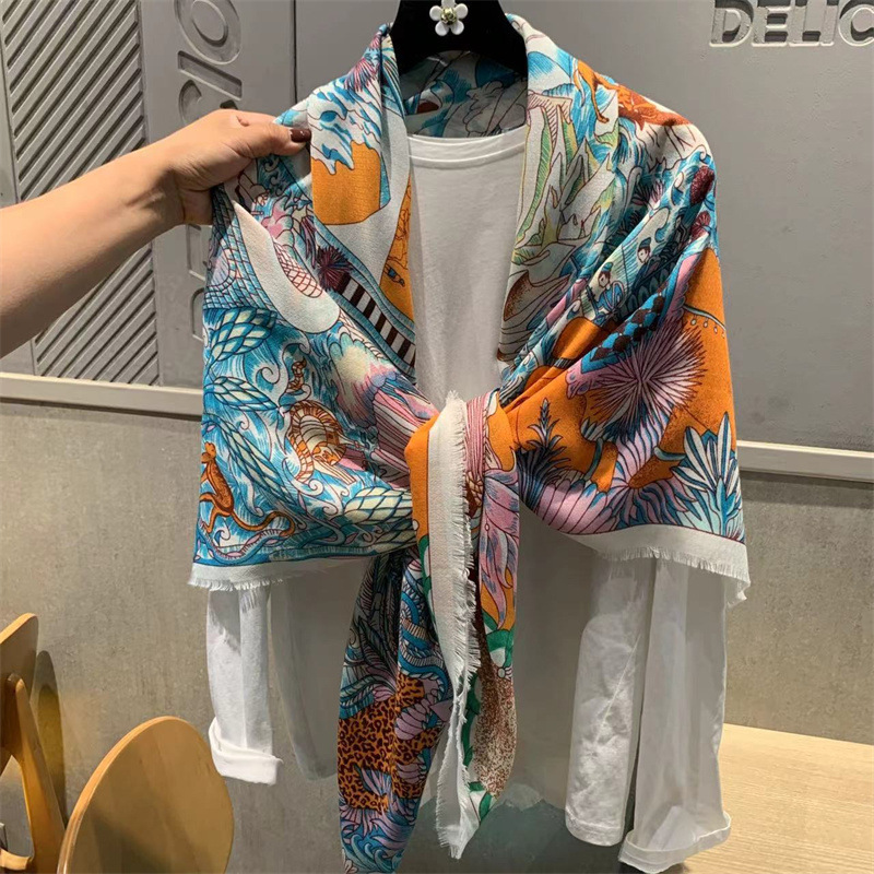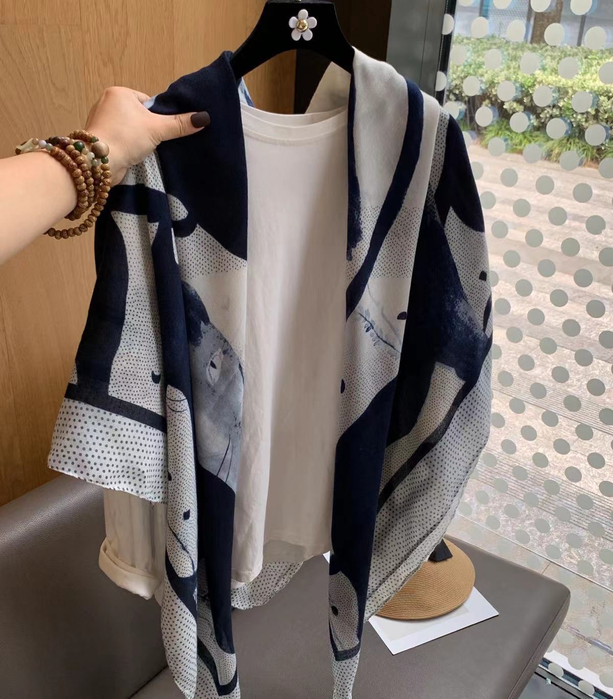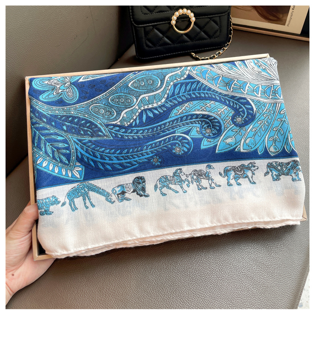 블루 레트로 130 대형 스퀘어 2024 여름 새로운 에어컨 룸 목도리 선스크린 실크 스카프 봄과 가을 리넨 스카프스토어 가기