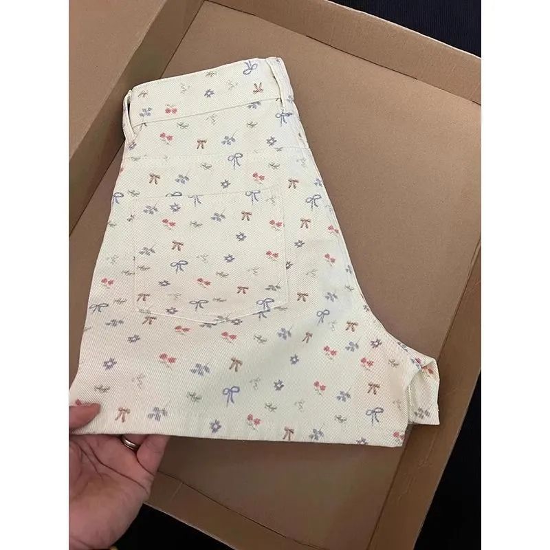 키티 고양이 자수 인쇄 데님 반바지 여성의 2025 여름 새로운 느슨한 캐주얼 스타일 스트레이트 반바지스토어 가기