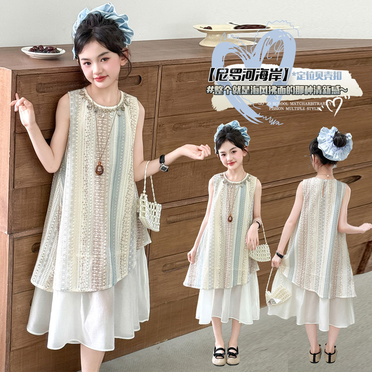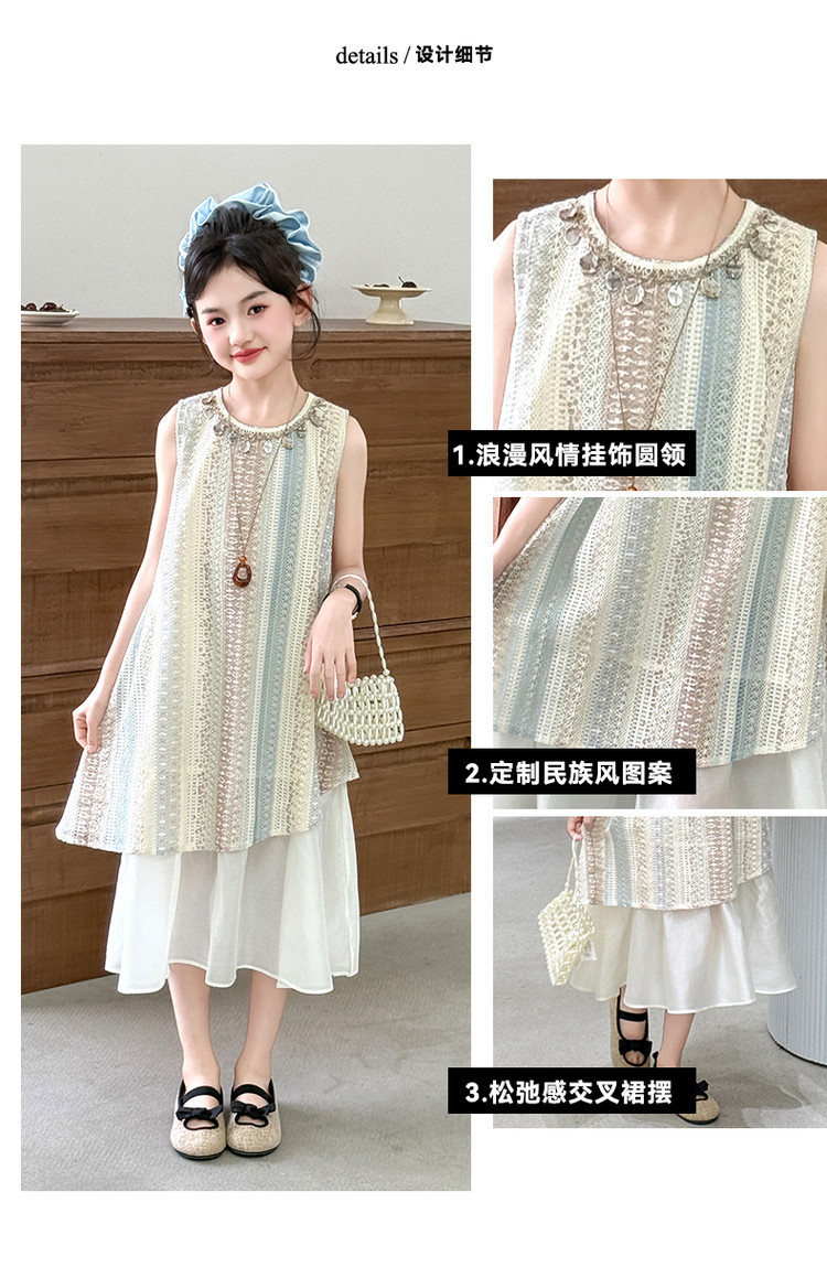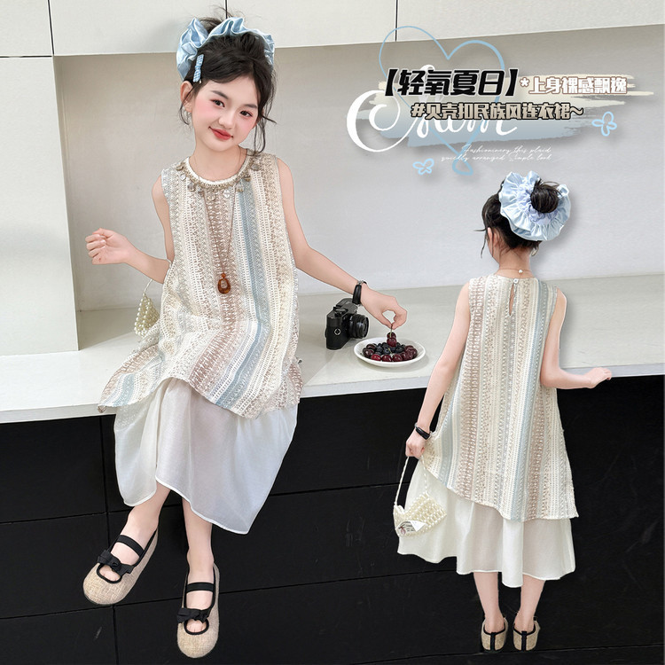 여자 새로운 캐미솔 드레스 여름 보헤미안 스타일 프린트 태슬 스플라이싱 민소매 드레스