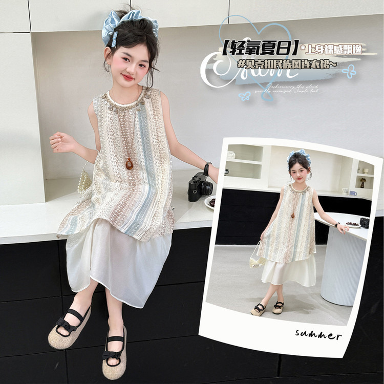 여자 새로운 캐미솔 드레스 여름 보헤미안 스타일 프린트 태슬 스플라이싱 민소매 드레스스토어 가기