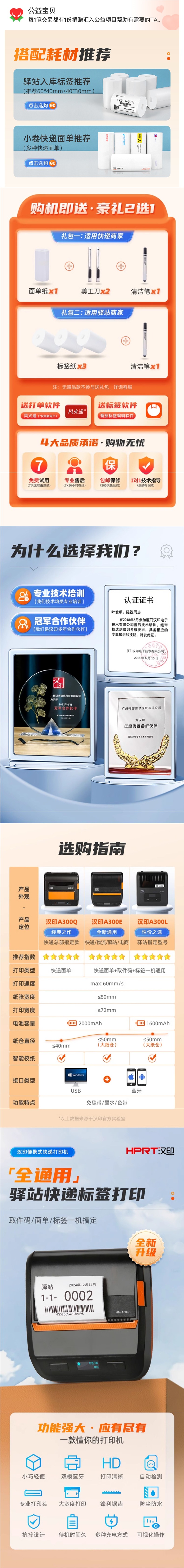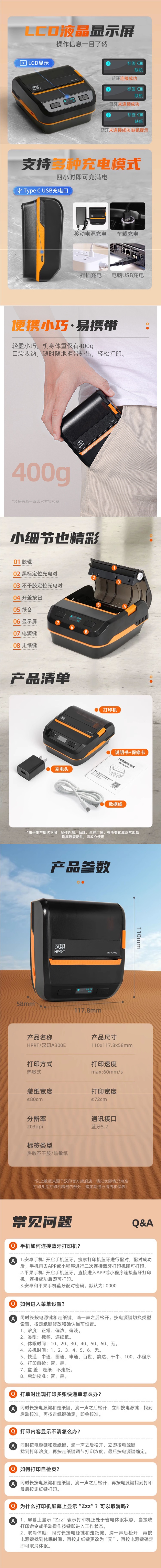 [SF Express] Hanpin 프린터 A300E/A300 휴대용 특급 프린터 일반 버전 Rabbit Express스토어 가기
