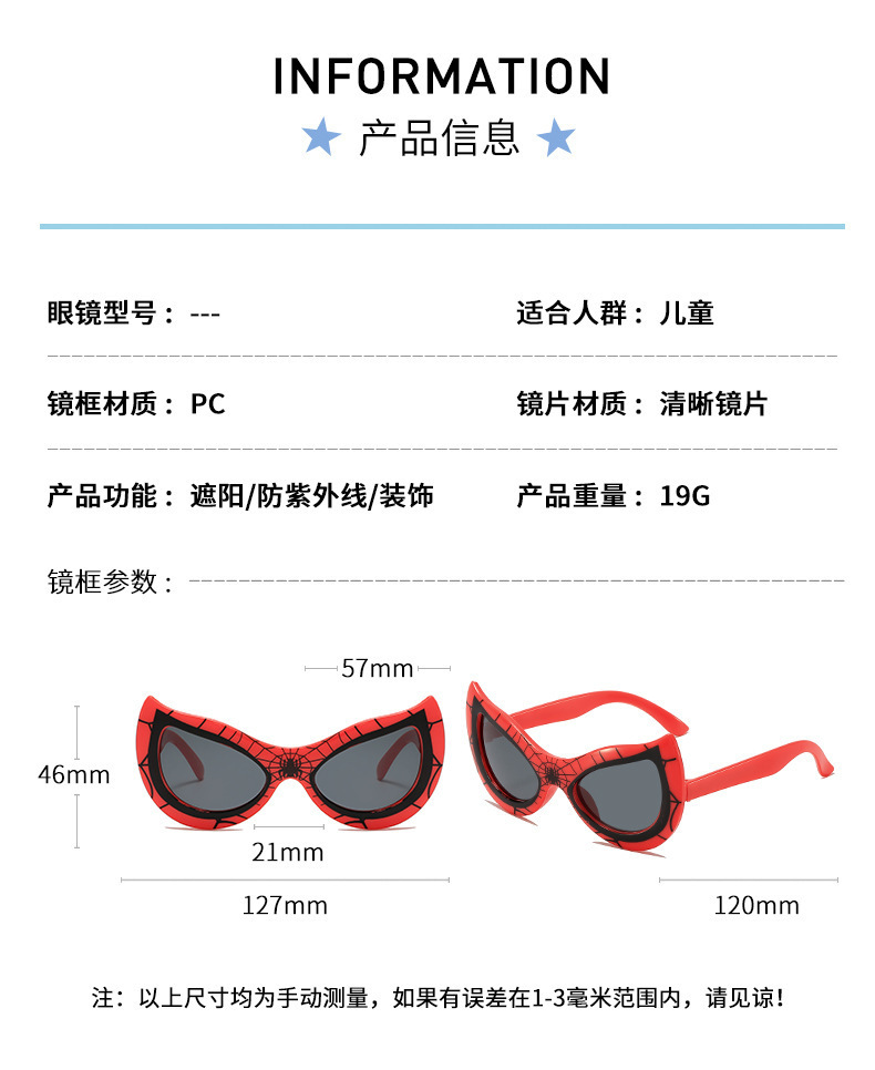 국경 만화 스파이더 맨 어린이 선글라스 선글라스 패션 소년과 소녀 마블 여름 태양 보호 안경