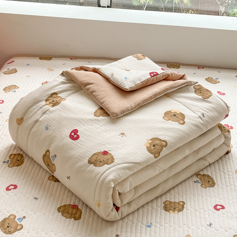 더블 레이어 원사 항균 여름 이불 에어컨 이불 여름 2025 새로운 기계 세탁 가능한 여름 이불 4 피스 세트스토어 가기