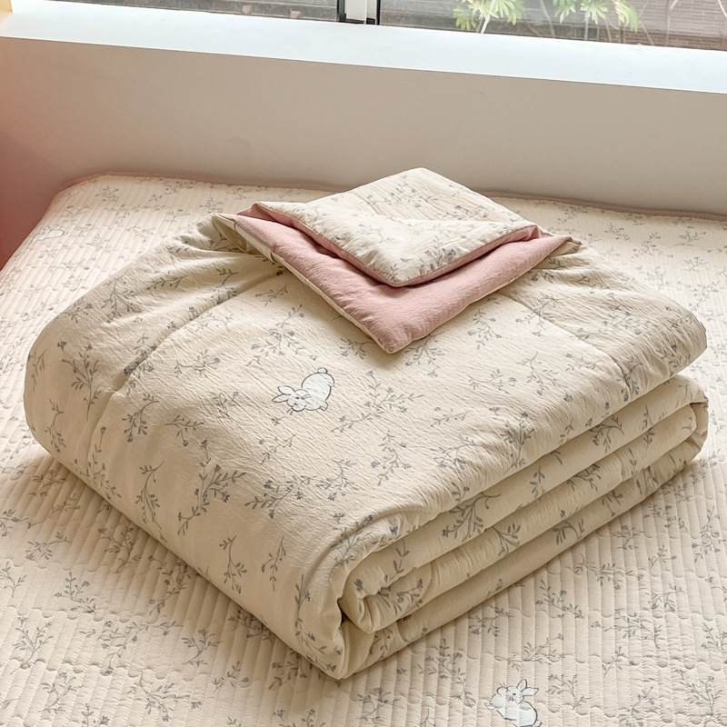 더블 레이어 원사 항균 여름 이불 에어컨 이불 여름 2025 새로운 기계 세탁 가능한 여름 이불 4 피스 세트