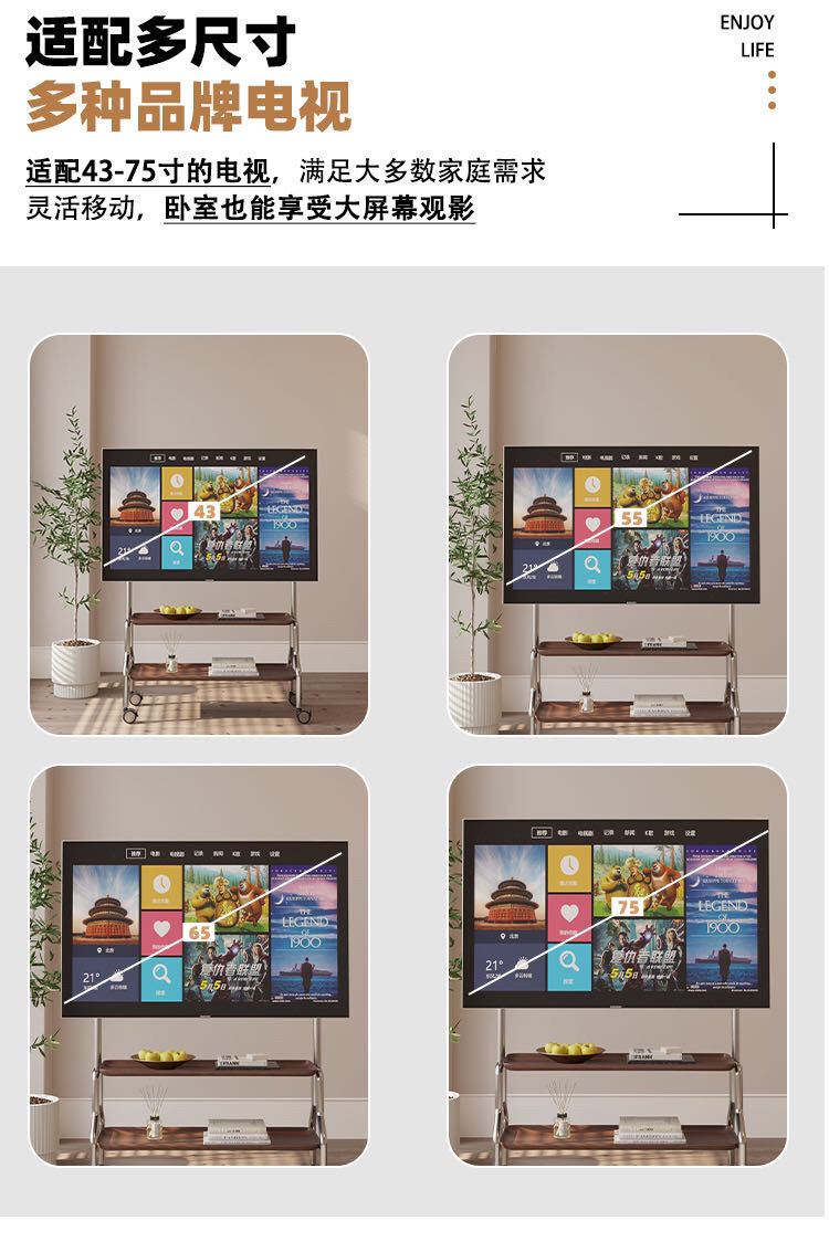 43 ~ 80 인치 바퀴 달린 거실 침실 카트 용 스테인레스 스틸 이동식 TV 바닥 스탠드 걸이스토어 가기