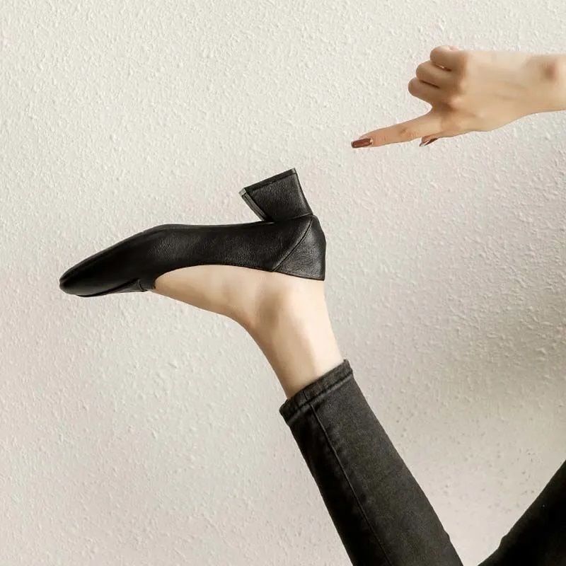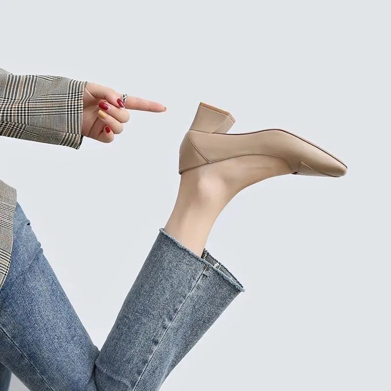 2025 새로운 하이 퀄리티 두꺼운 힐 우아한 얕은 하이힐 한국 다목적 전문 작업화 편안한 여성용 싱글 신발