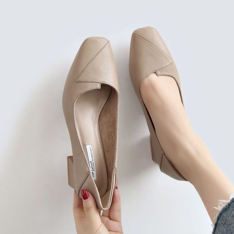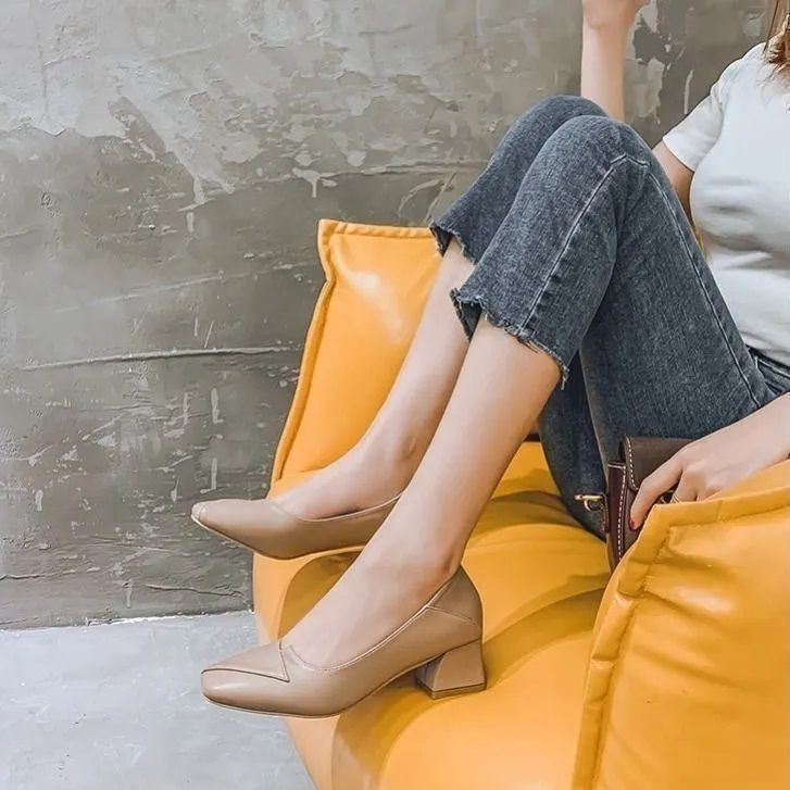 2025 새로운 하이 퀄리티 두꺼운 힐 우아한 얕은 하이힐 한국 다목적 전문 작업화 편안한 여성용 싱글 신발스토어 가기