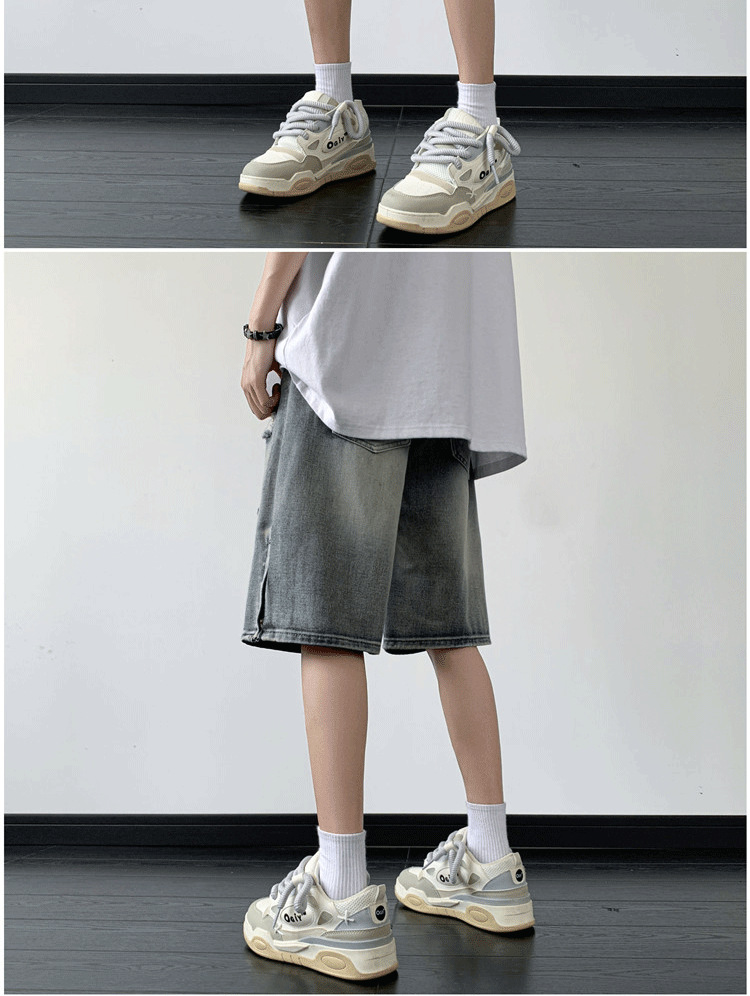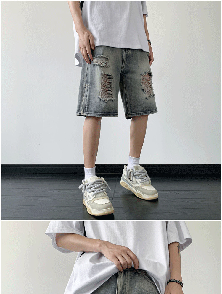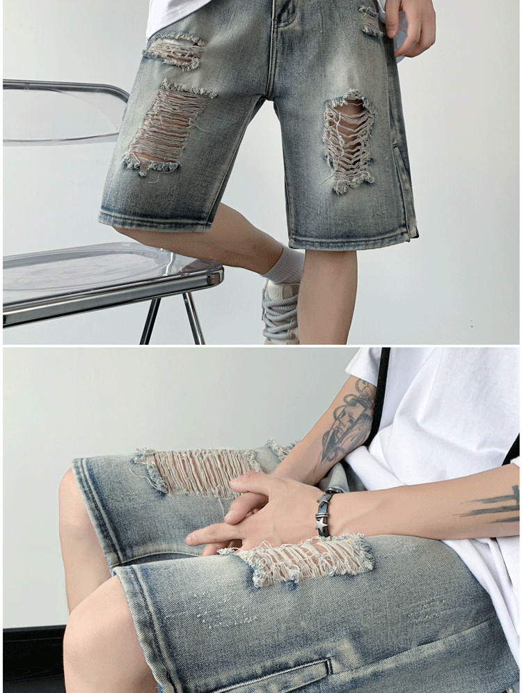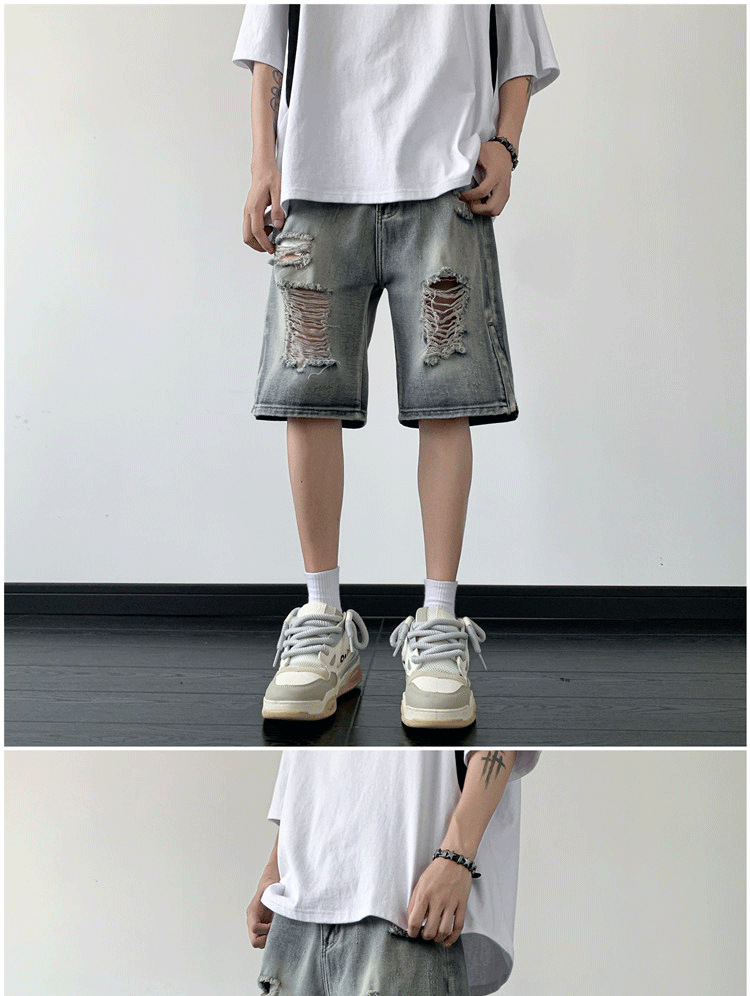 5 점 바지 헐렁한 스트레이트 청바지 올매치 청소년 인기 매일 여름 남자 세탁 유행 일본 버튼