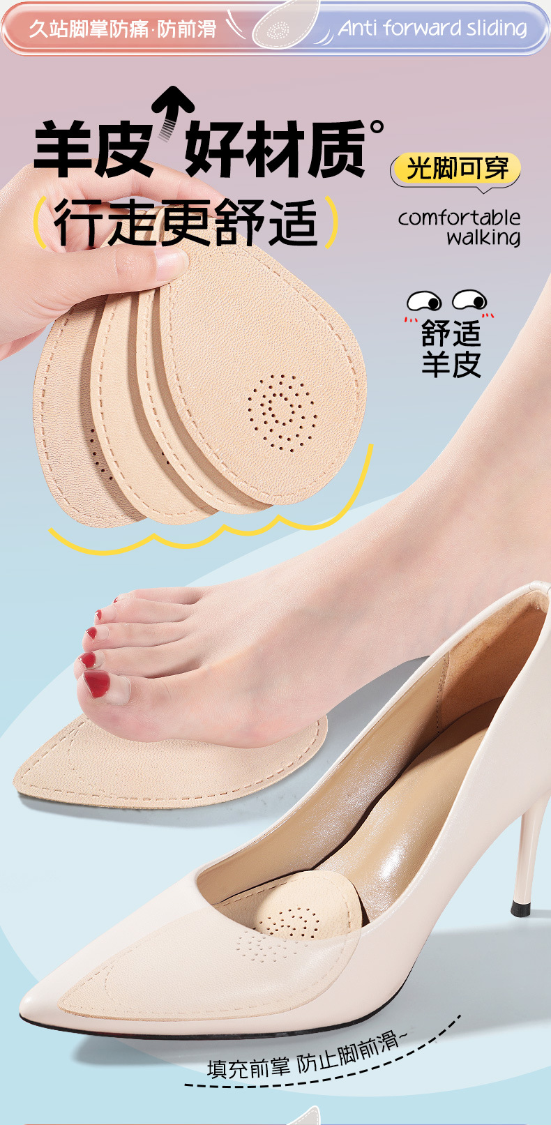포론 슈퍼 소프트 양가죽 앞발 패드 여성용 하이힐 하프 사이즈 패드 앞발 패드 통증 방지 패드 신발을 작게 만들기 위한 마법의 도구스토어 가기