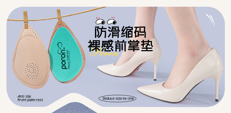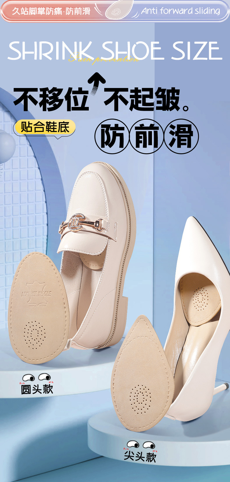포론 슈퍼 소프트 양가죽 앞발 패드 여성용 하이힐 하프 사이즈 패드 앞발 패드 통증 방지 패드 신발을 작게 만들기 위한 마법의 도구