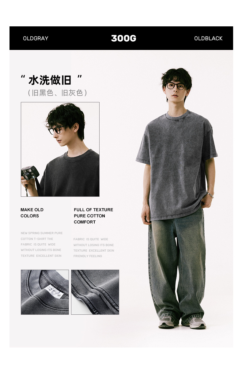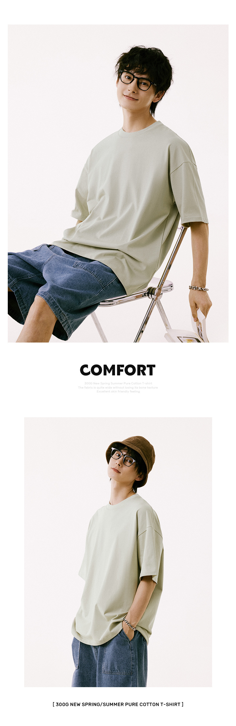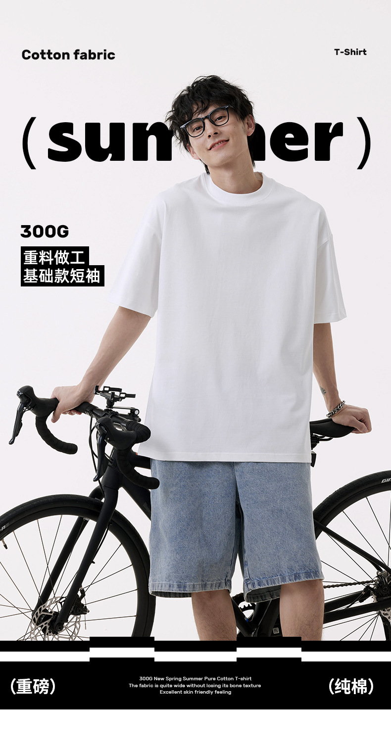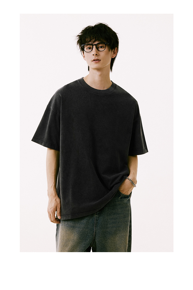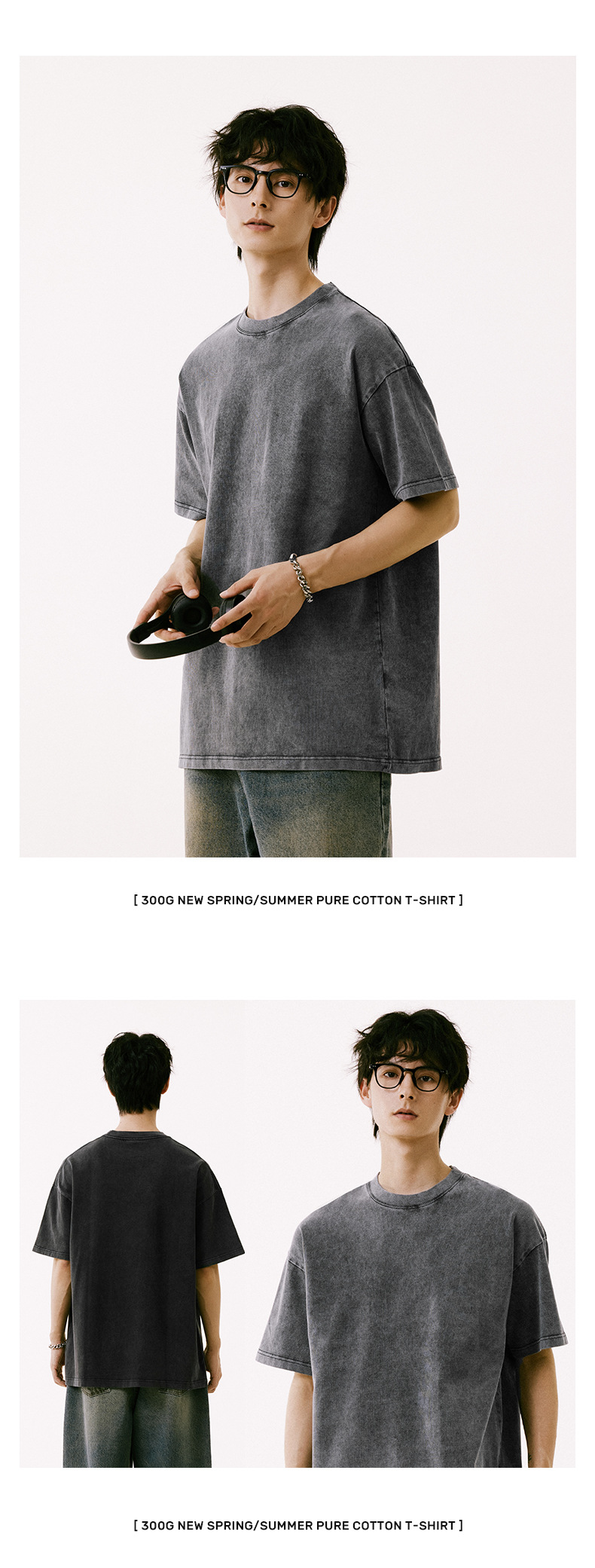 레트로 아메리칸 헤비 코튼 300g 느슨한 반팔 남성 티셔츠 캐주얼 여름 단색 조커 커플 재킷스토어 가기
