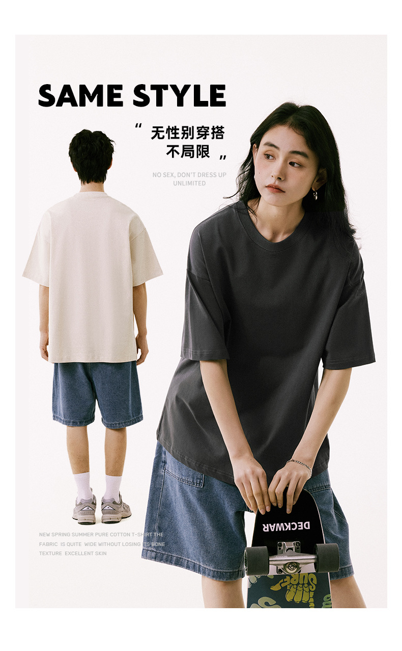 레트로 아메리칸 헤비 코튼 300g 느슨한 반팔 남성 티셔츠 캐주얼 여름 단색 조커 커플 재킷