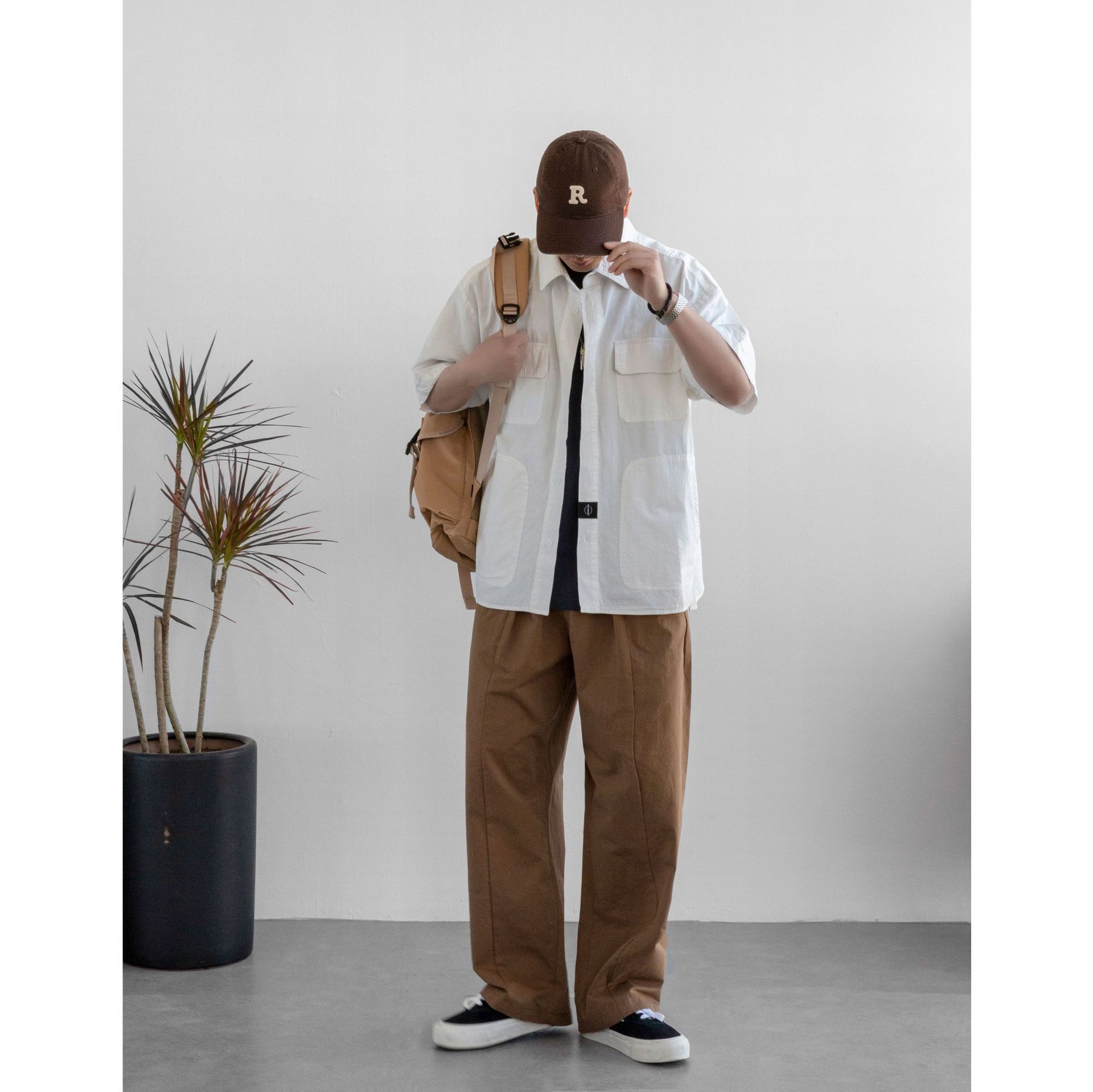 짧은 소매 셔츠 남자의 일본 스타일 레트로 여름 느슨한 학생 플러스 사이즈 반 소매 캐주얼 탑 중간 소매 셔츠 재킷스토어 가기