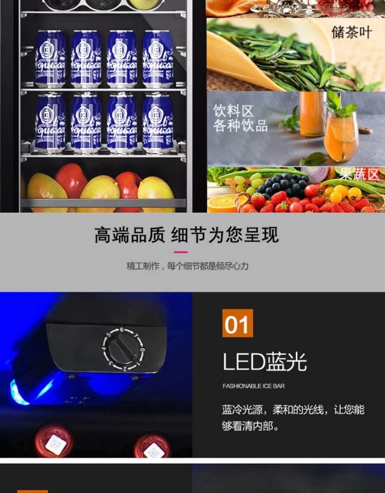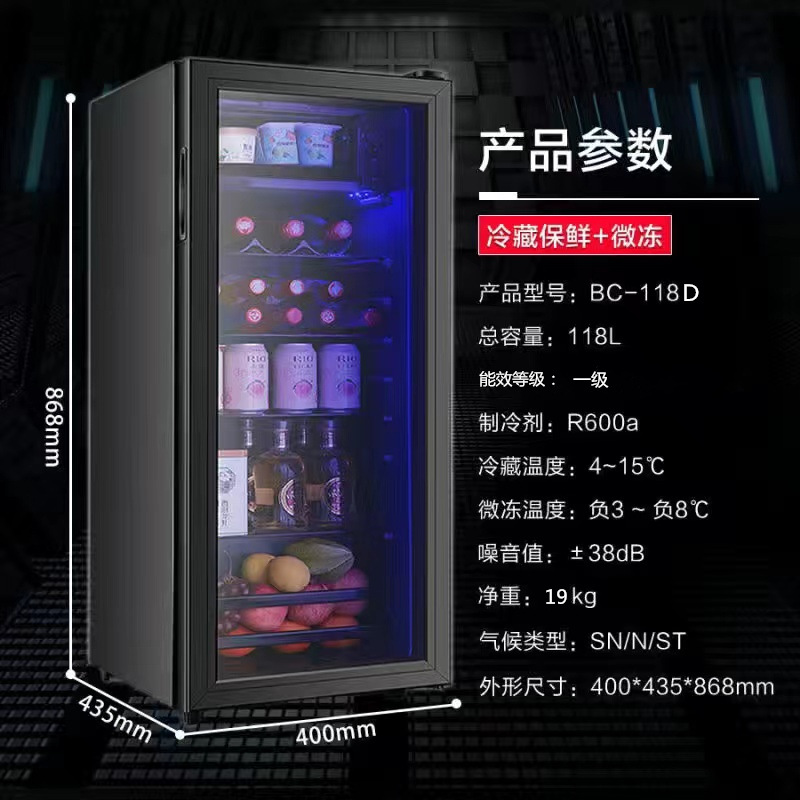 • 239L 컴퓨터 디지털 디스플레이 + 완전 냉장 + LED 조명 + [공냉식 동관]