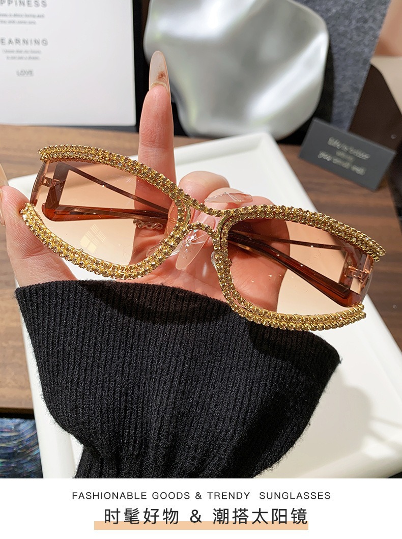 2025 새로운 패션 개인화 된 풀 다이아몬드 할로우 선글라스 국경 간 레트로 선글라스 트렌디 스트리트 샷 선글라스 여성스토어 가기