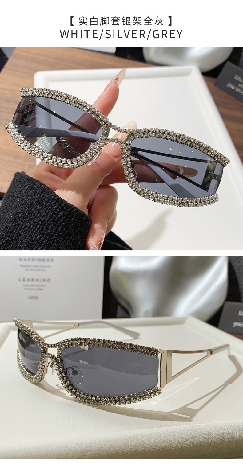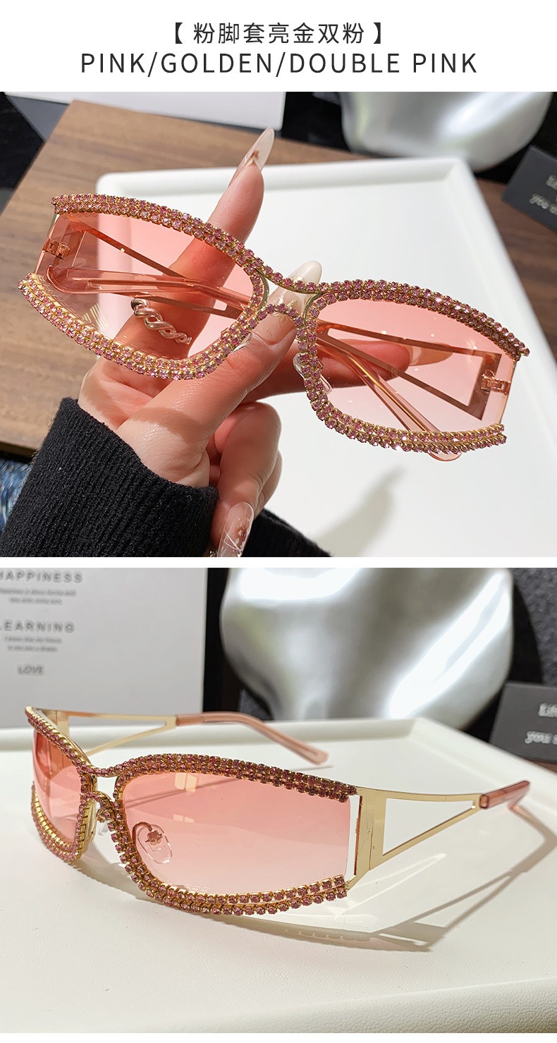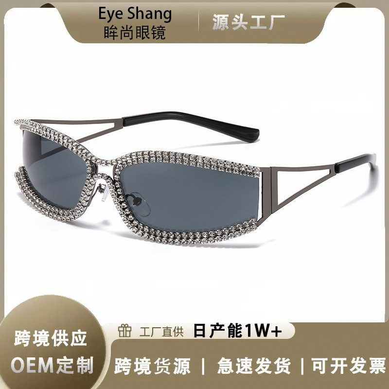 2025 새로운 패션 개인화 된 풀 다이아몬드 할로우 선글라스 국경 간 레트로 선글라스 트렌디 스트리트 샷 선글라스 여성