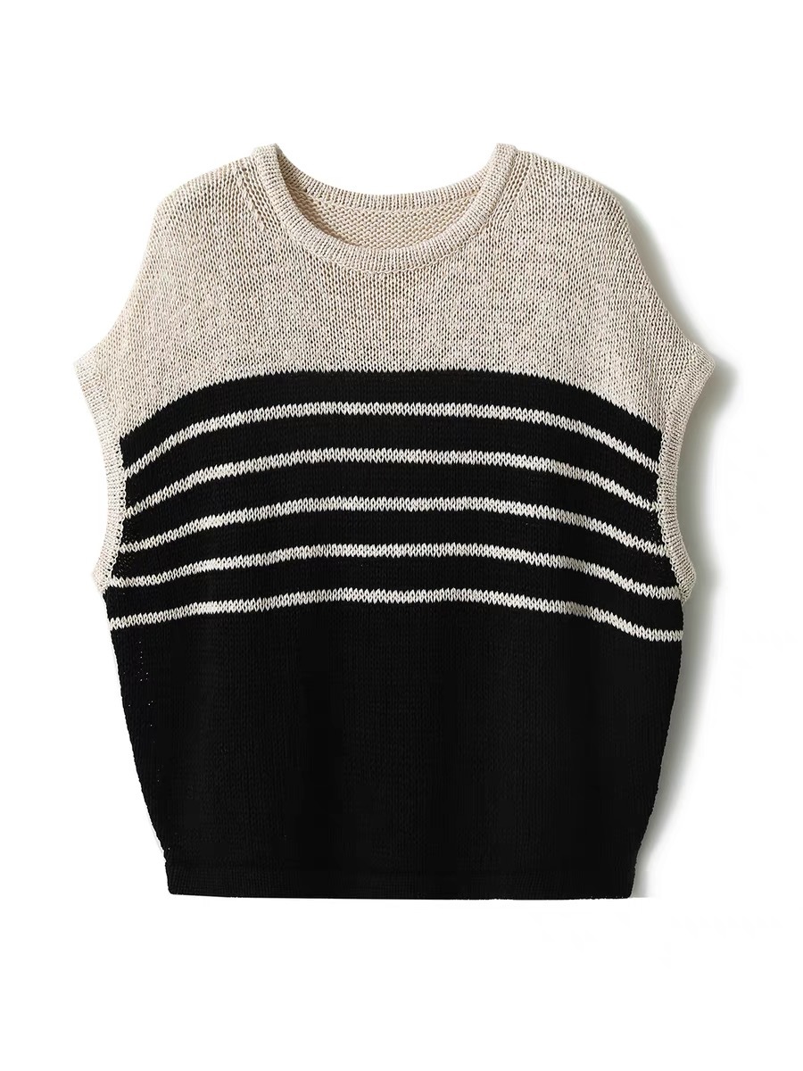 2024 여름 새로운 줄무늬 스웨터 질감 전체 ~ 질감 디자인 색상 일치 라운드 목 느슨한 티셔츠 여성