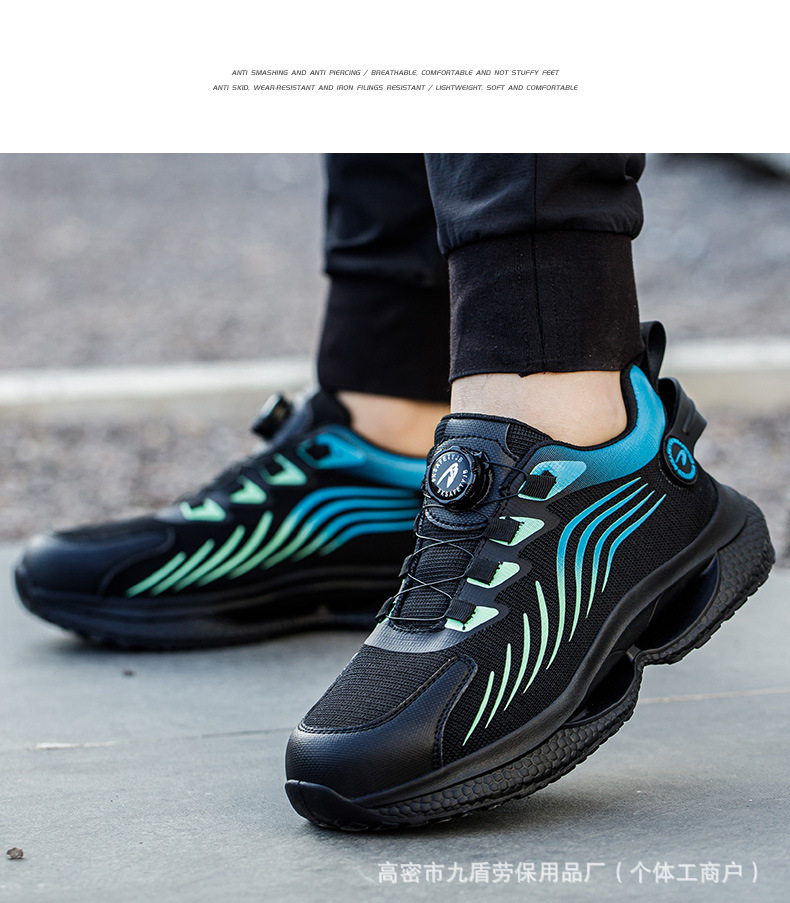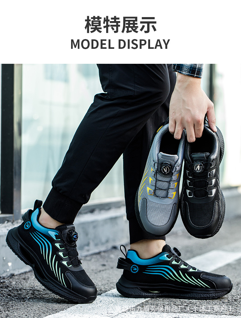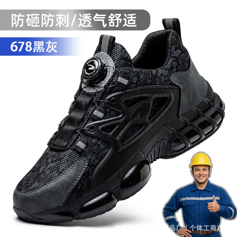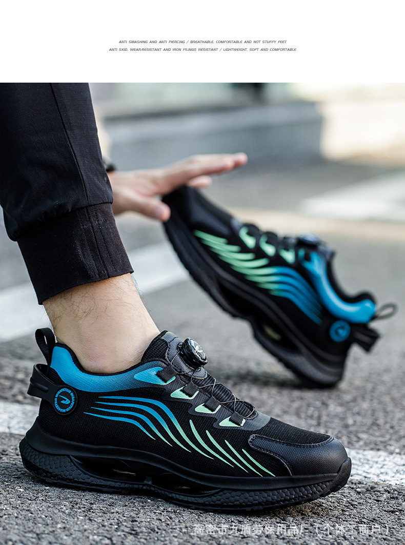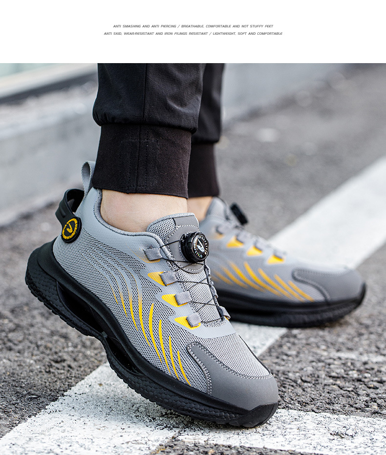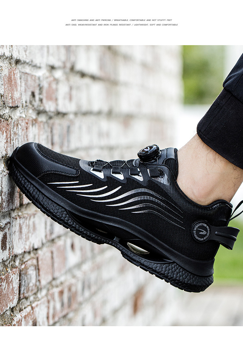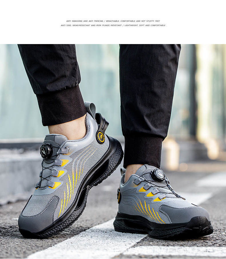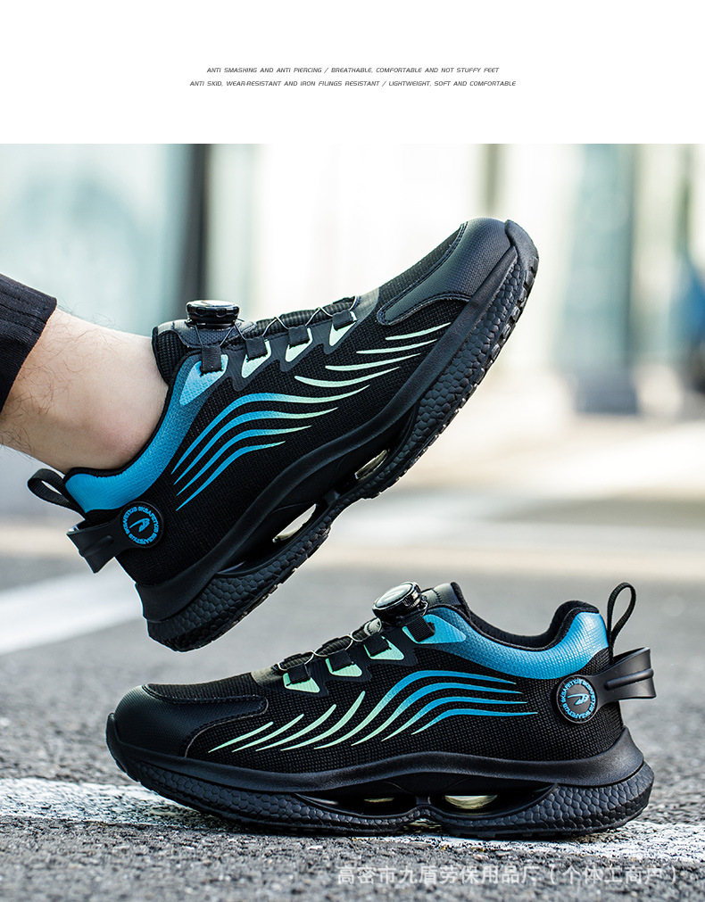 노동 보호화, 스틸 토캡으로 충격 방지 및 펑크 방지, 가볍고 편안하며 통기성이 좋은 메쉬 소재, 버튼형, 발이 피곤하지 않은 안전 작업화