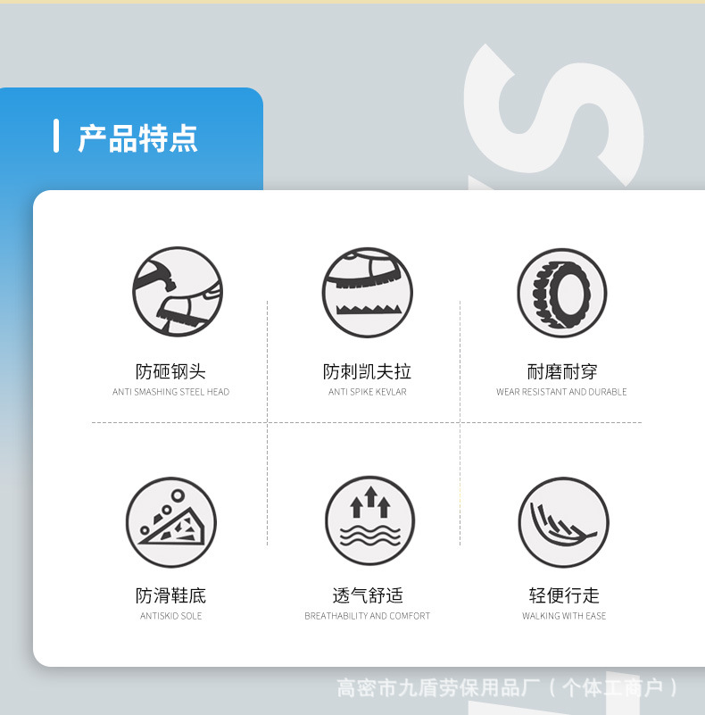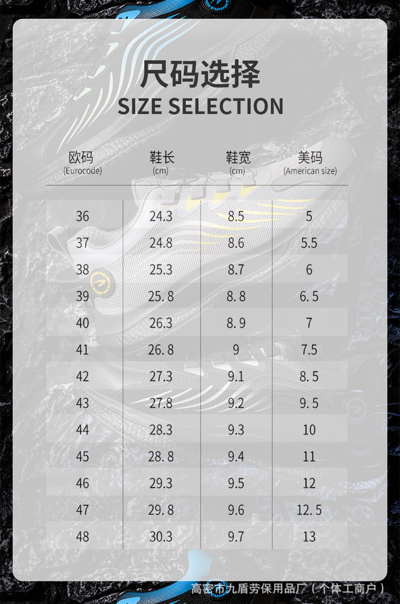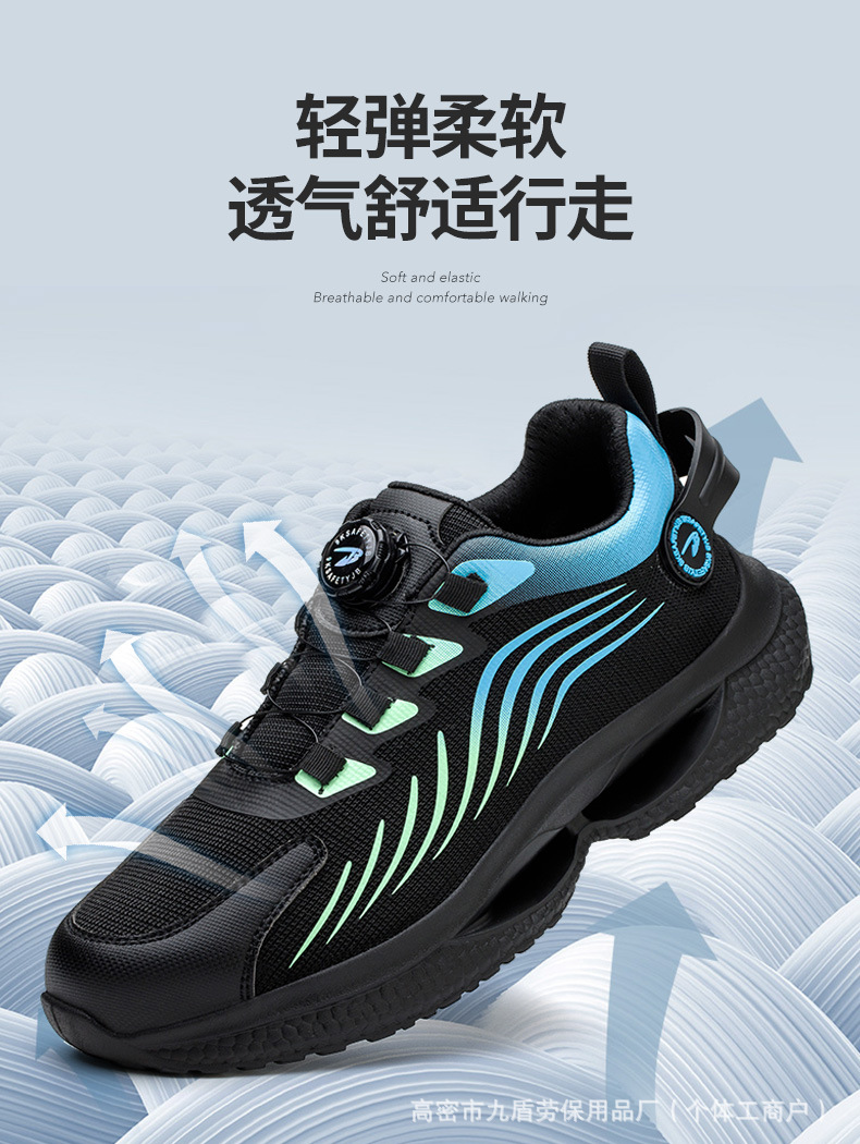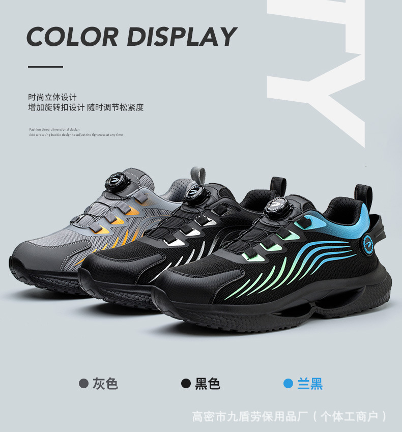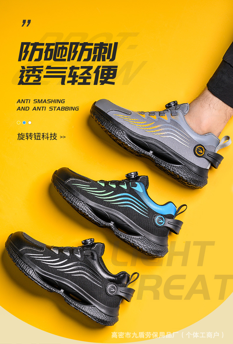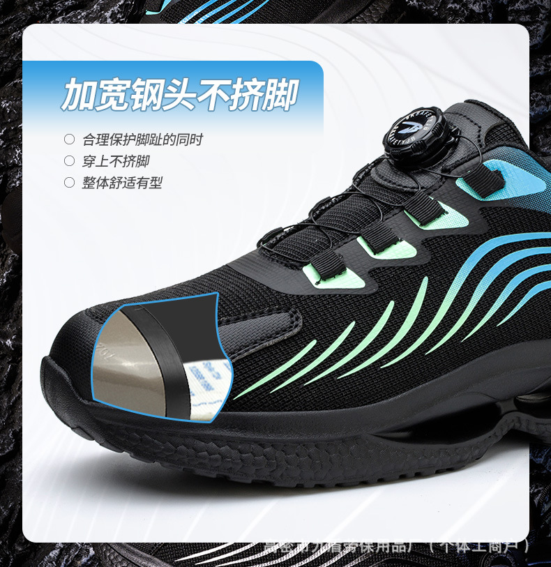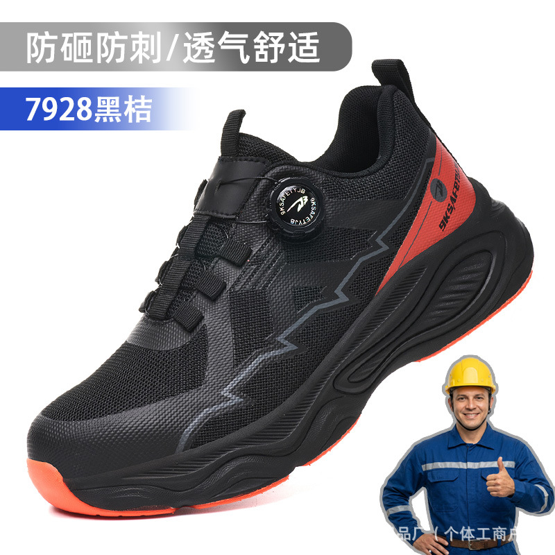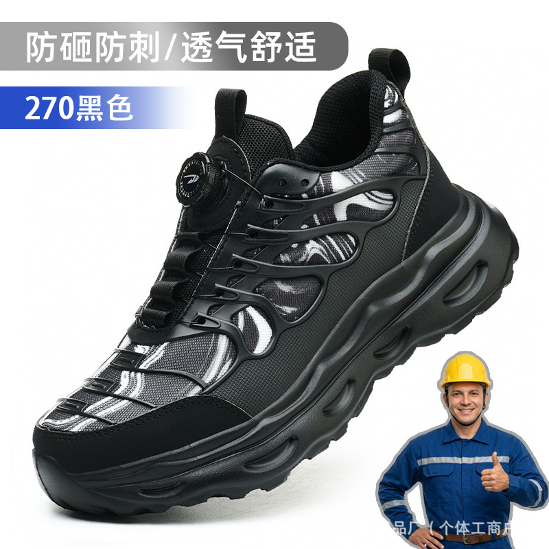 노동 보호화, 스틸 토캡으로 충격 방지 및 펑크 방지, 가볍고 편안하며 통기성이 좋은 메쉬 소재, 버튼형, 발이 피곤하지 않은 안전 작업화