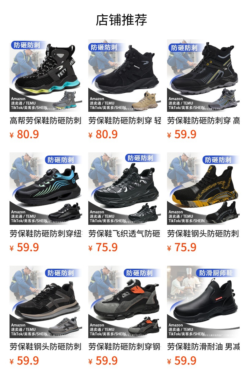 노동 보호화, 스틸 토캡으로 충격 방지 및 펑크 방지, 가볍고 편안하며 통기성이 좋은 메쉬 소재, 버튼형, 발이 피곤하지 않은 안전 작업화스토어 가기