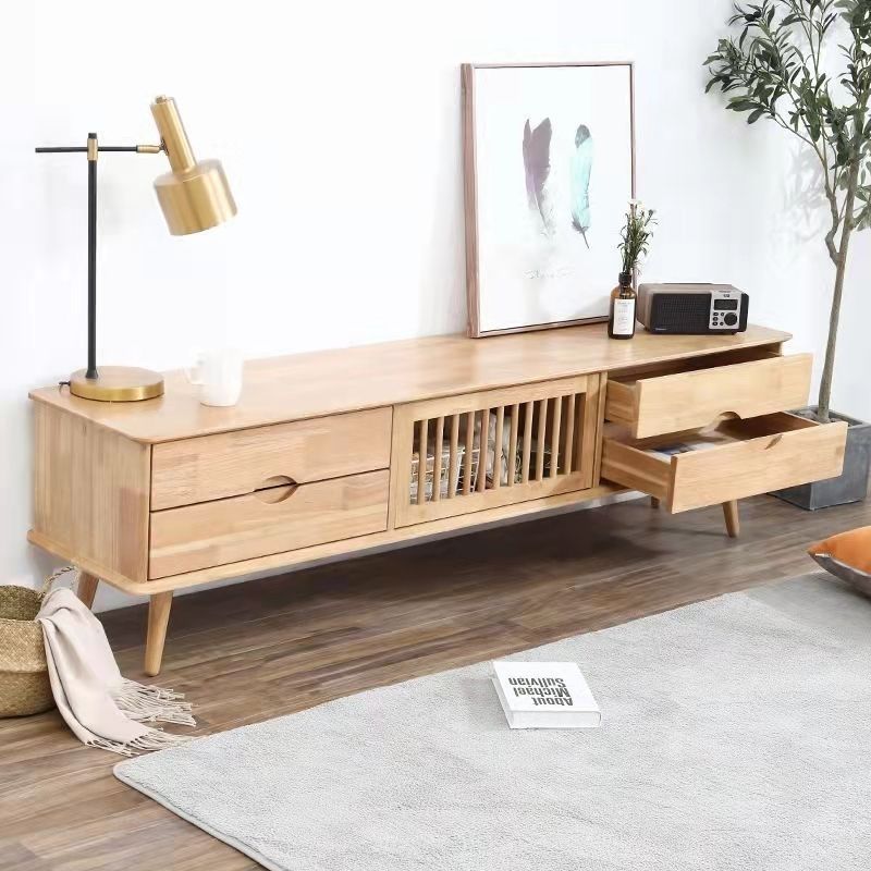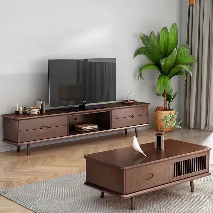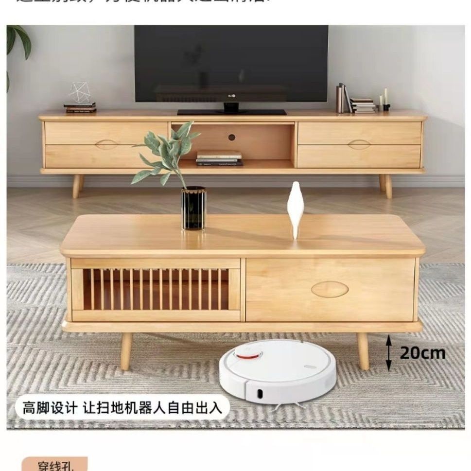 북유럽 단단한 나무 커피 테이블 TV 캐비닛 조합 거실 작은 아파트 현대 간단한 빛 럭셔리 루버 침실 영화 및 TV 어린이스토어 가기