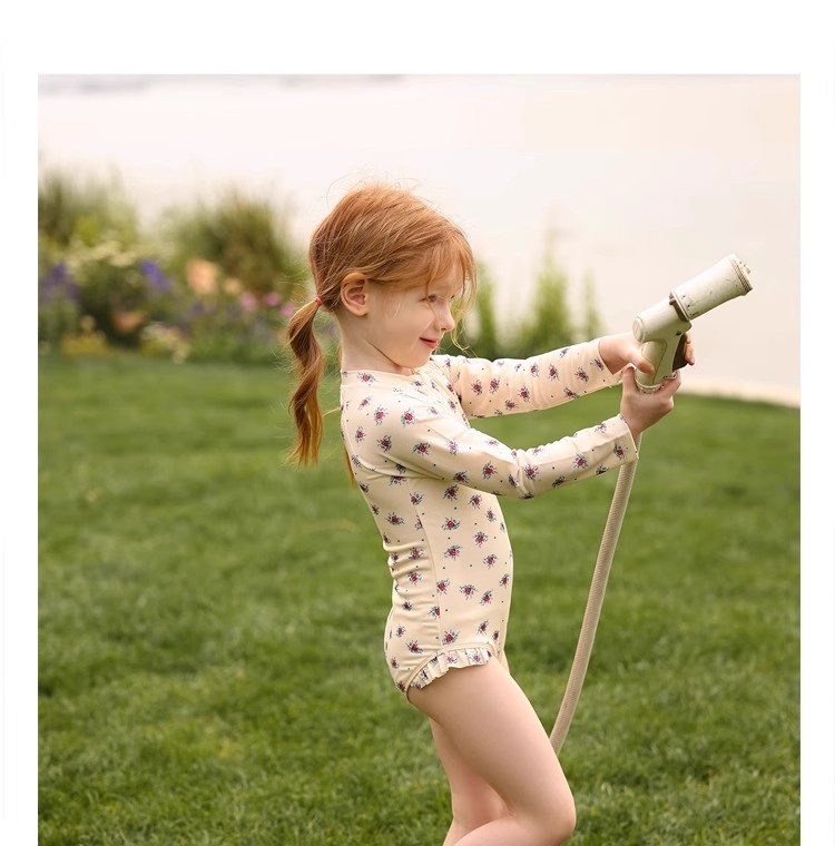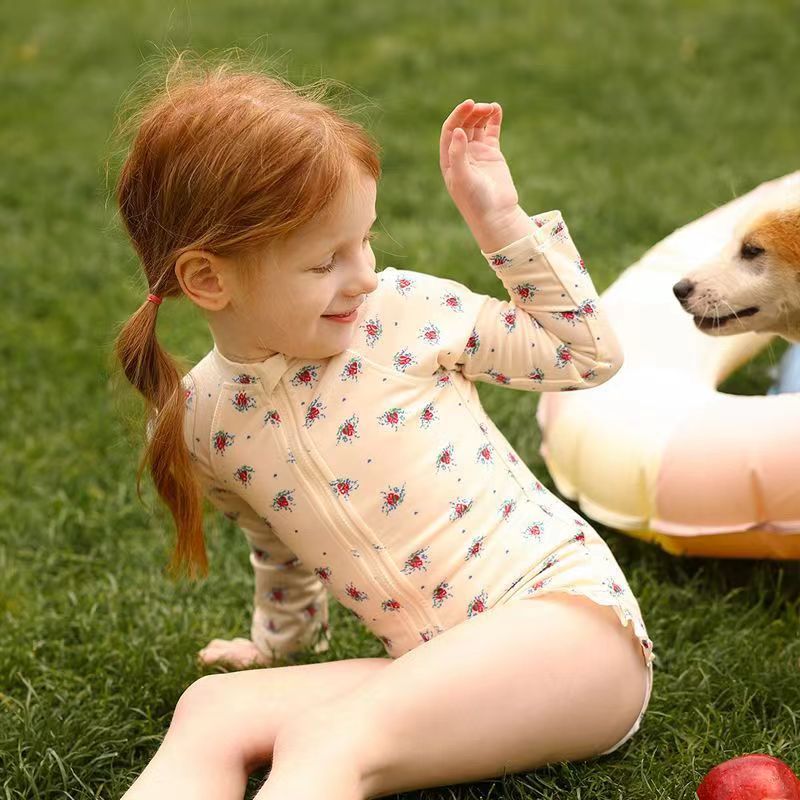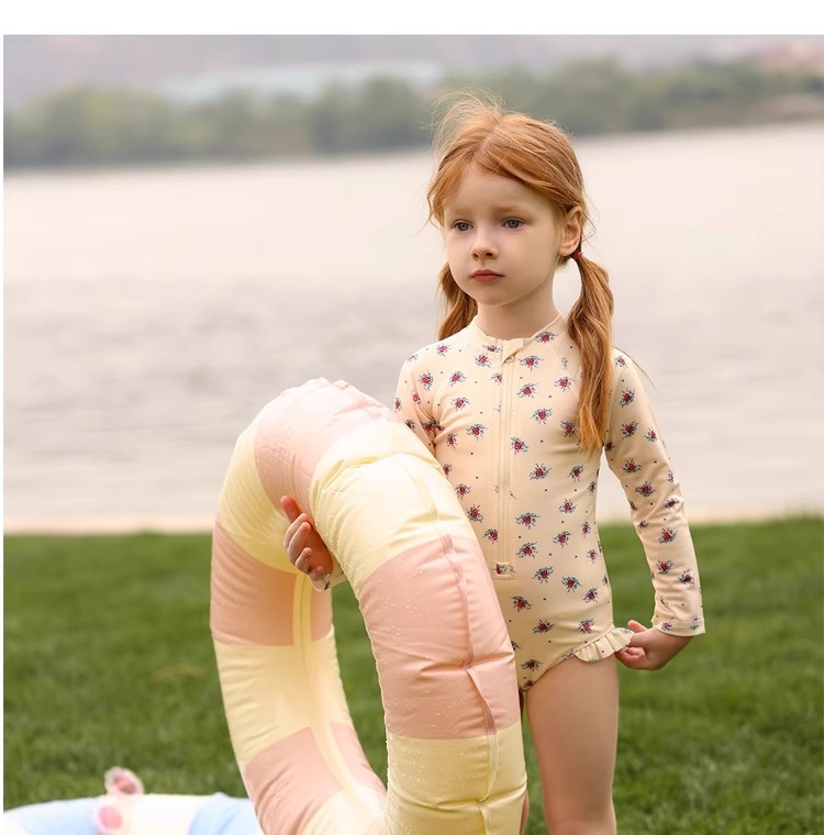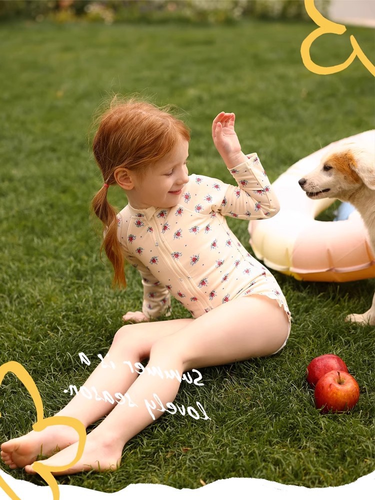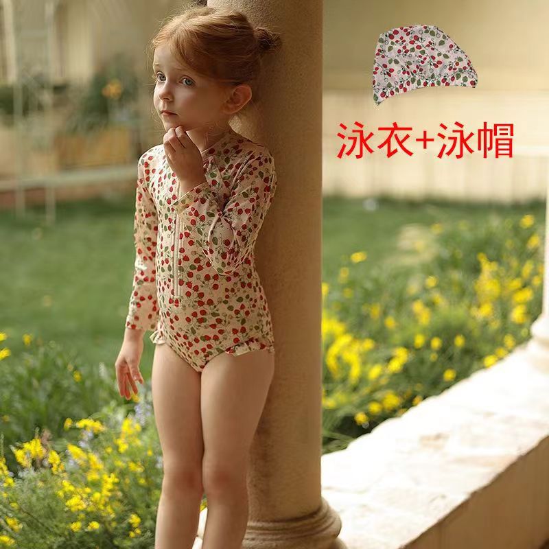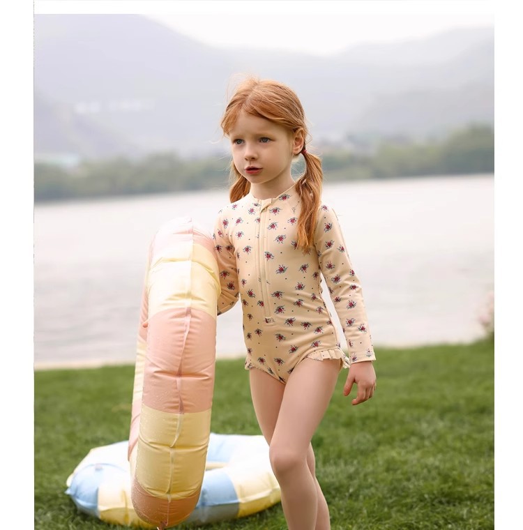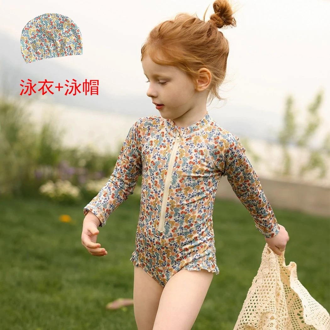새로운 스타일의 여아용 인스 스타일 원피스 수영복 여름옷 어린이용 꽃무늬 자외선 차단 속건 긴팔 수영복스토어 가기