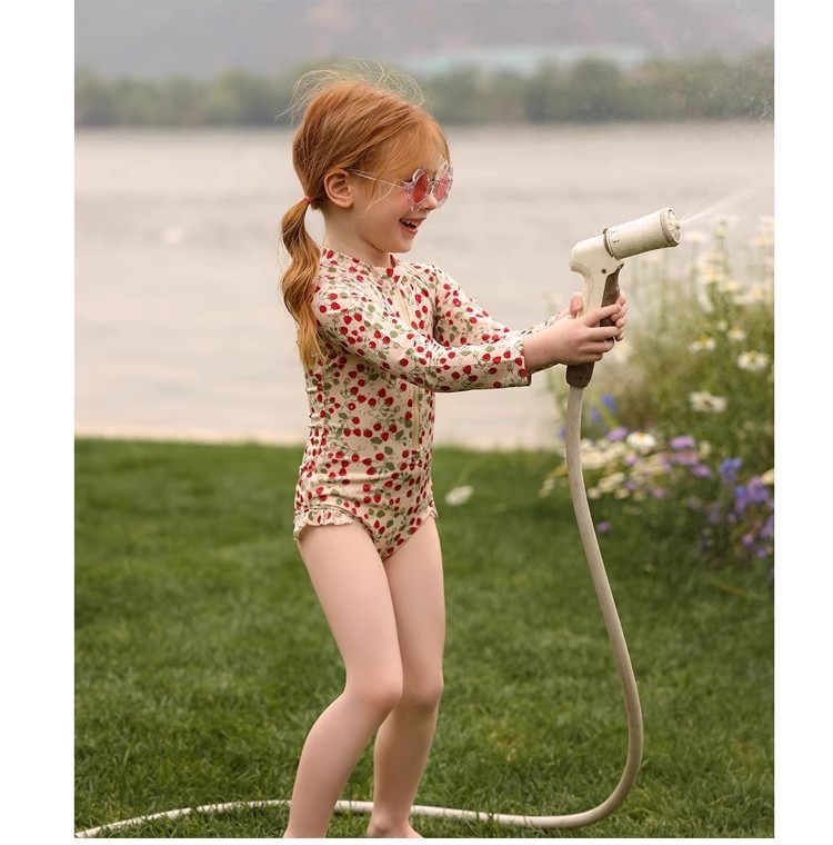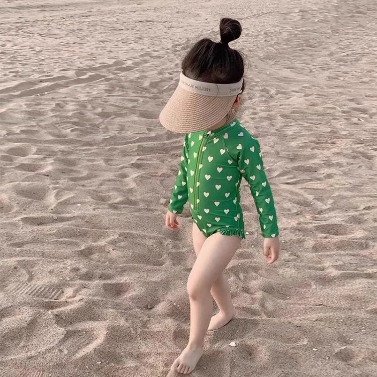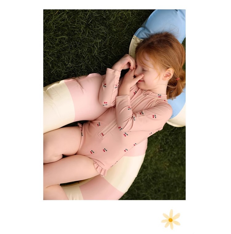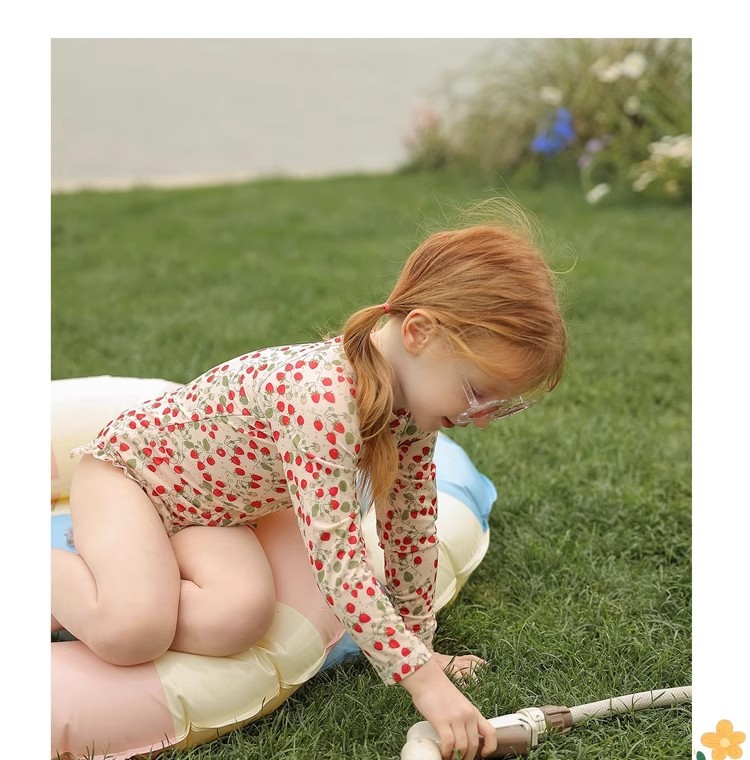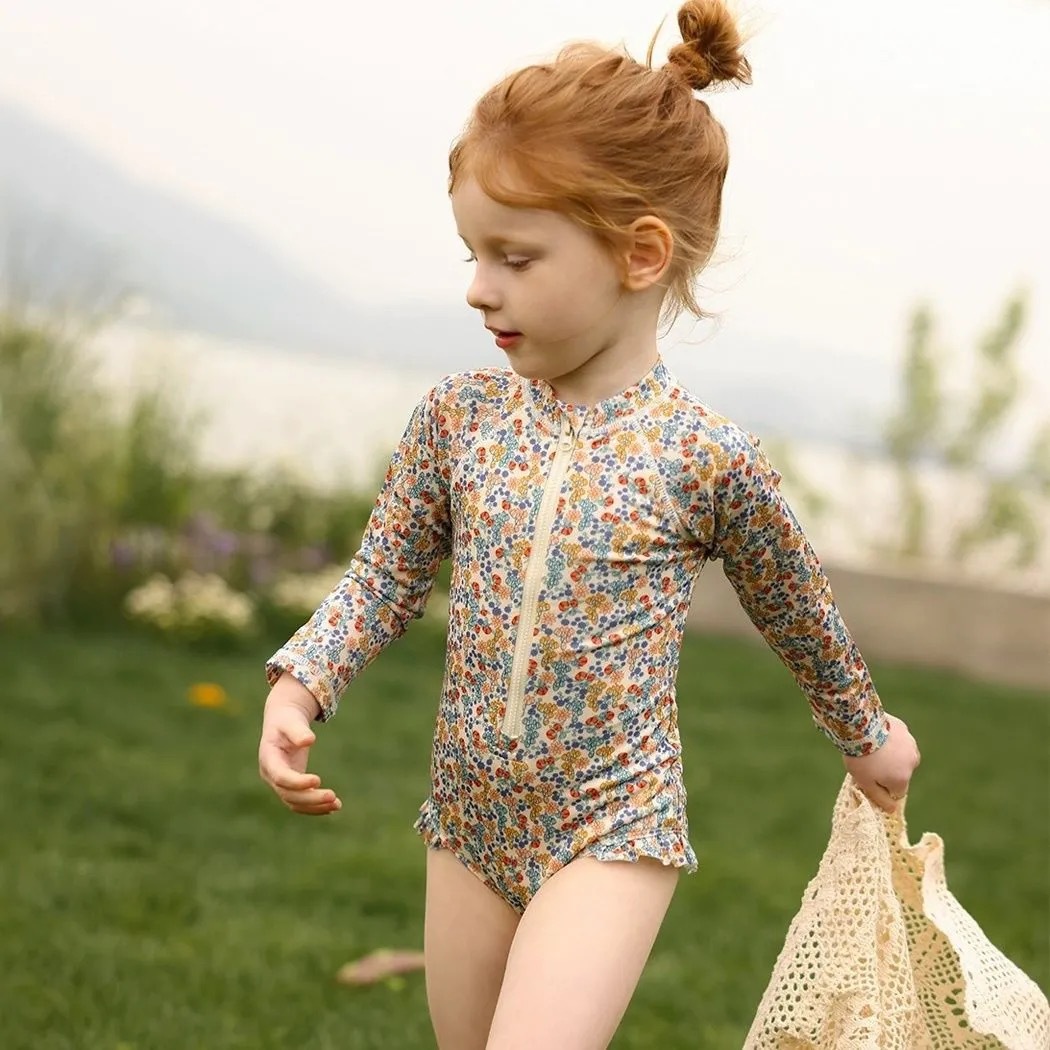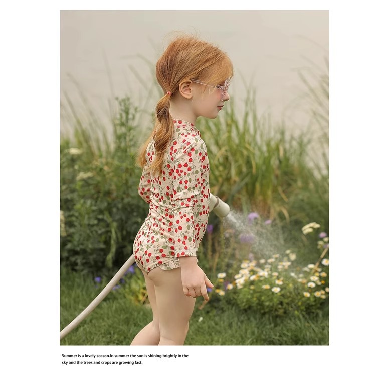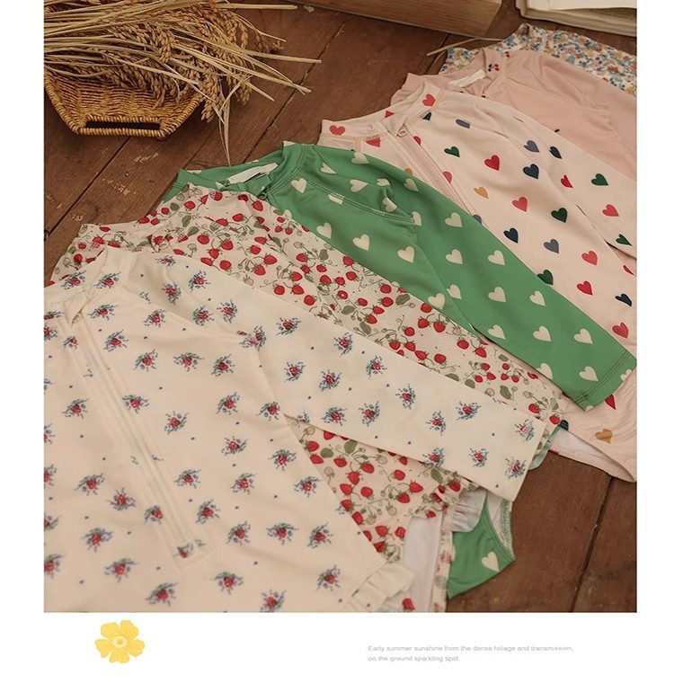 새로운 스타일의 여아용 인스 스타일 원피스 수영복 여름옷 어린이용 꽃무늬 자외선 차단 속건 긴팔 수영복스토어 가기