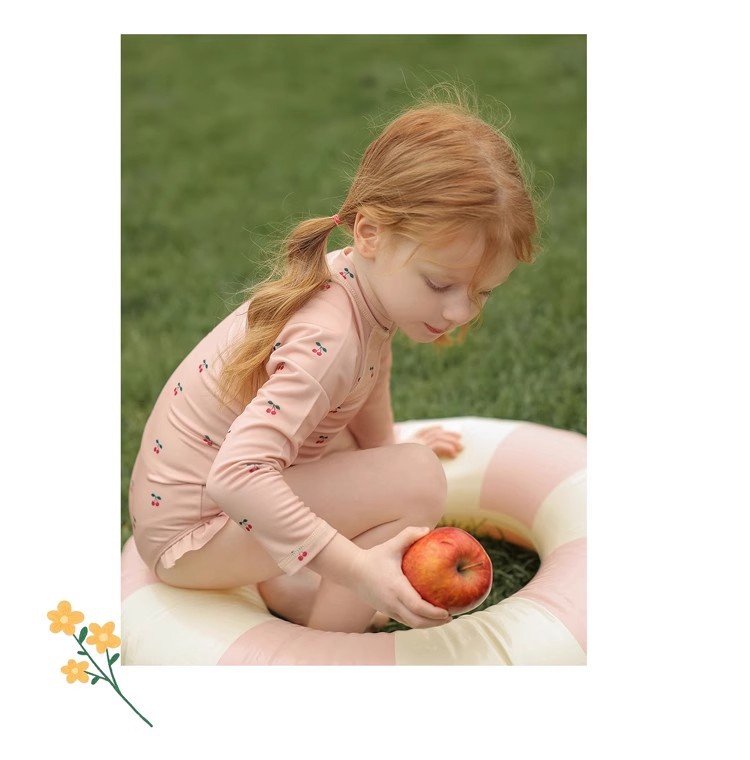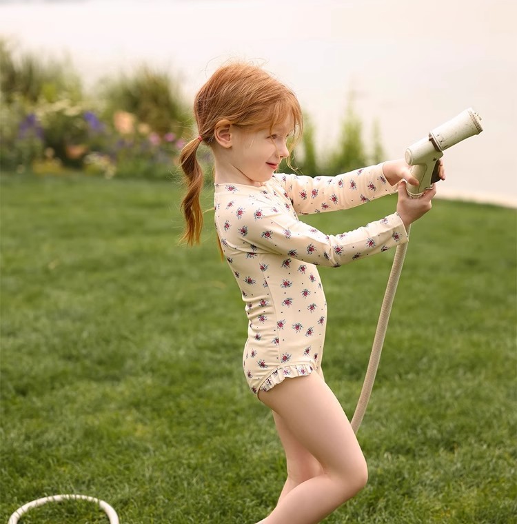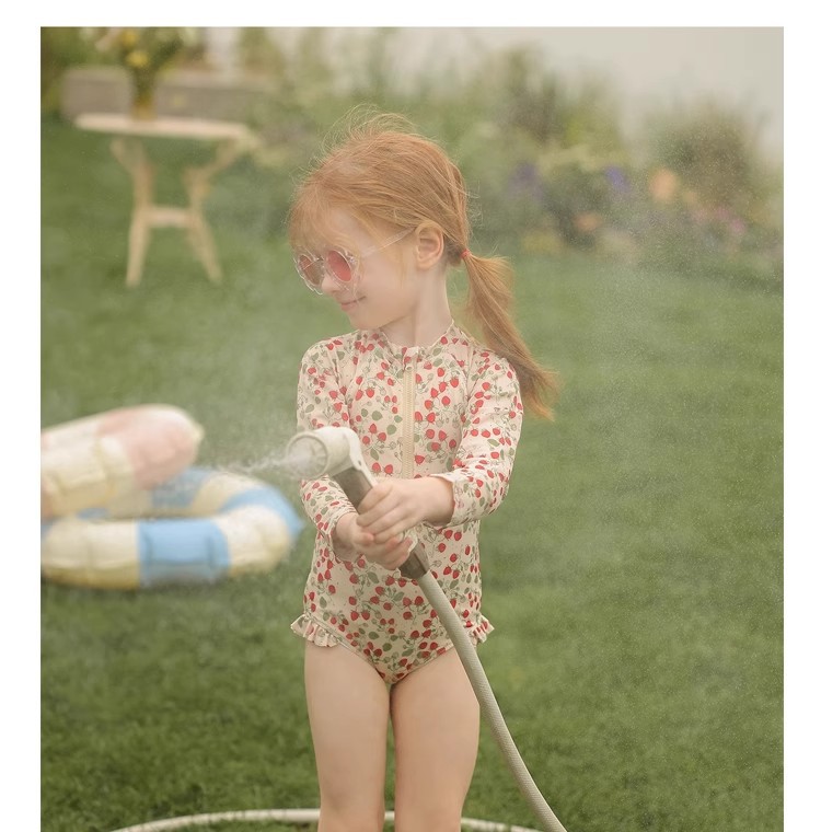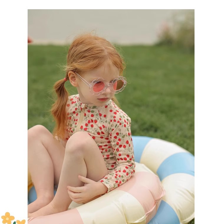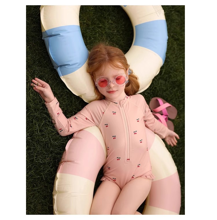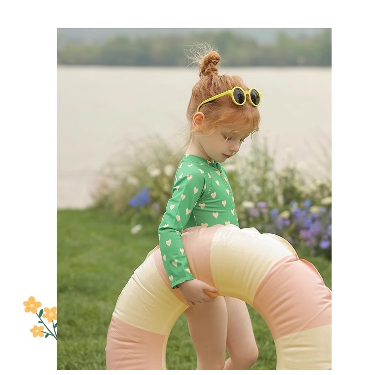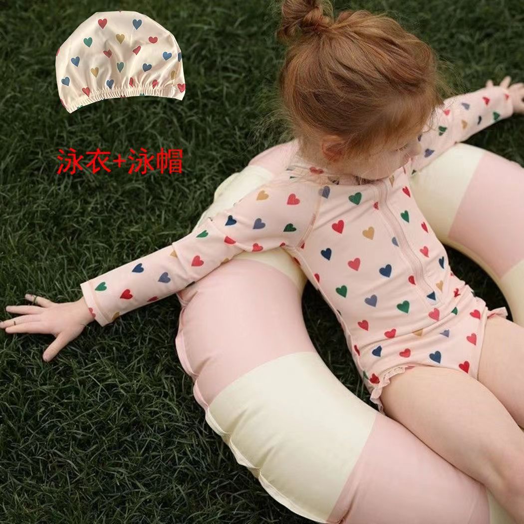 새로운 스타일의 여아용 인스 스타일 원피스 수영복 여름옷 어린이용 꽃무늬 자외선 차단 속건 긴팔 수영복스토어 가기