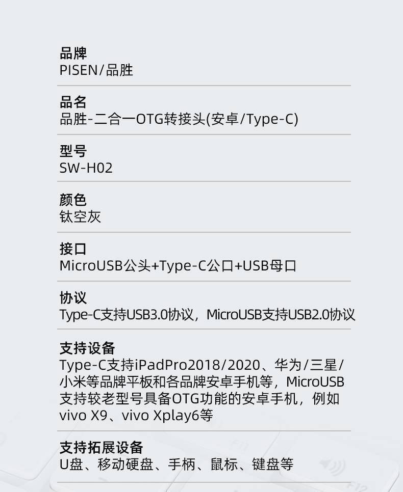 • Android 및 iPhone15-16 시리즈에 적용 가능한 USB3.2-Type-c 인터페이스 [어댑터 티타늄 그레이] 끈(가방에 포장)과 함께 제공됩니다.
