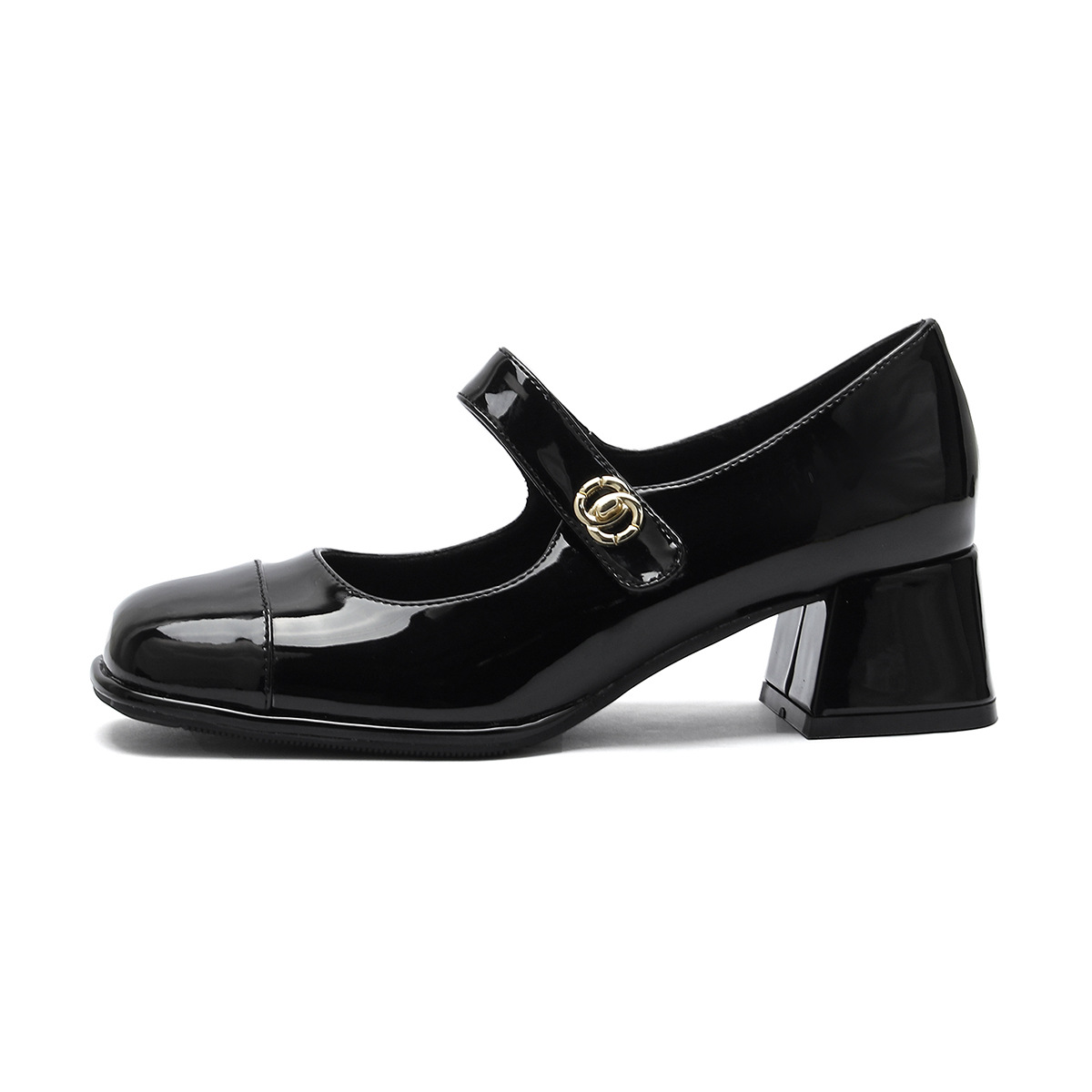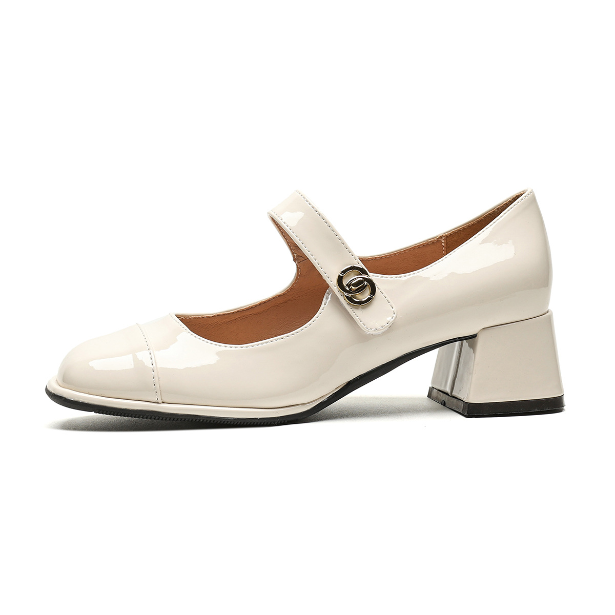 프렌치 컬리지 스타일 클래식 만능 라운드토 얕은 굽 스트랩 청키힐 메리제인 여성 가죽 신발 봄 여름