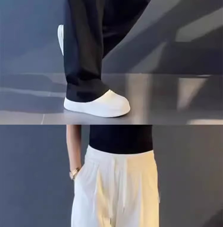 미스터 파우더 의류 남성 바지 2025 봄 신작 남성 트렌디 캐주얼 바지 라이트 럭셔리 드레이프 와이드 레그 스트레이트 팬츠스토어 가기