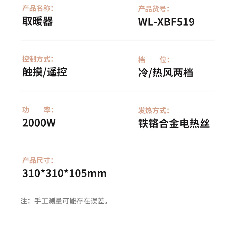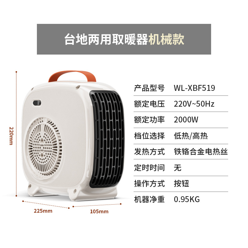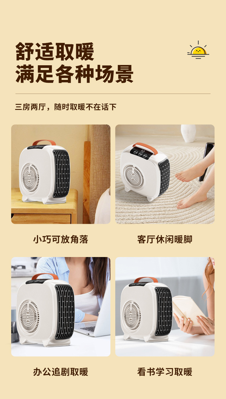 • 【미색 기계식】PTC 급속 가열 + 넘어짐 방지 스위치 + 과열 보호 + 넓은 범위 송풍 + 1.2m 연장선