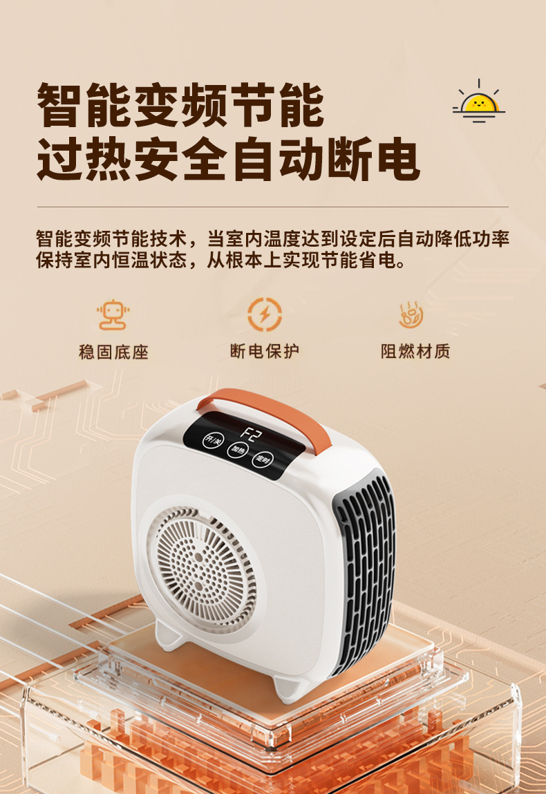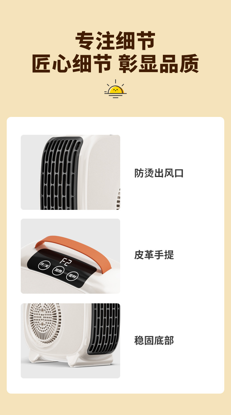 • 【미색 터치스크린 리모컨형】 이중 안전 보호 기능 업그레이드 + 대형 듀얼 흡입구 + PTC 급속 가열 + 넘어짐 방지 스위치 + 과열 방지 기능 + 1.2m 연장선
