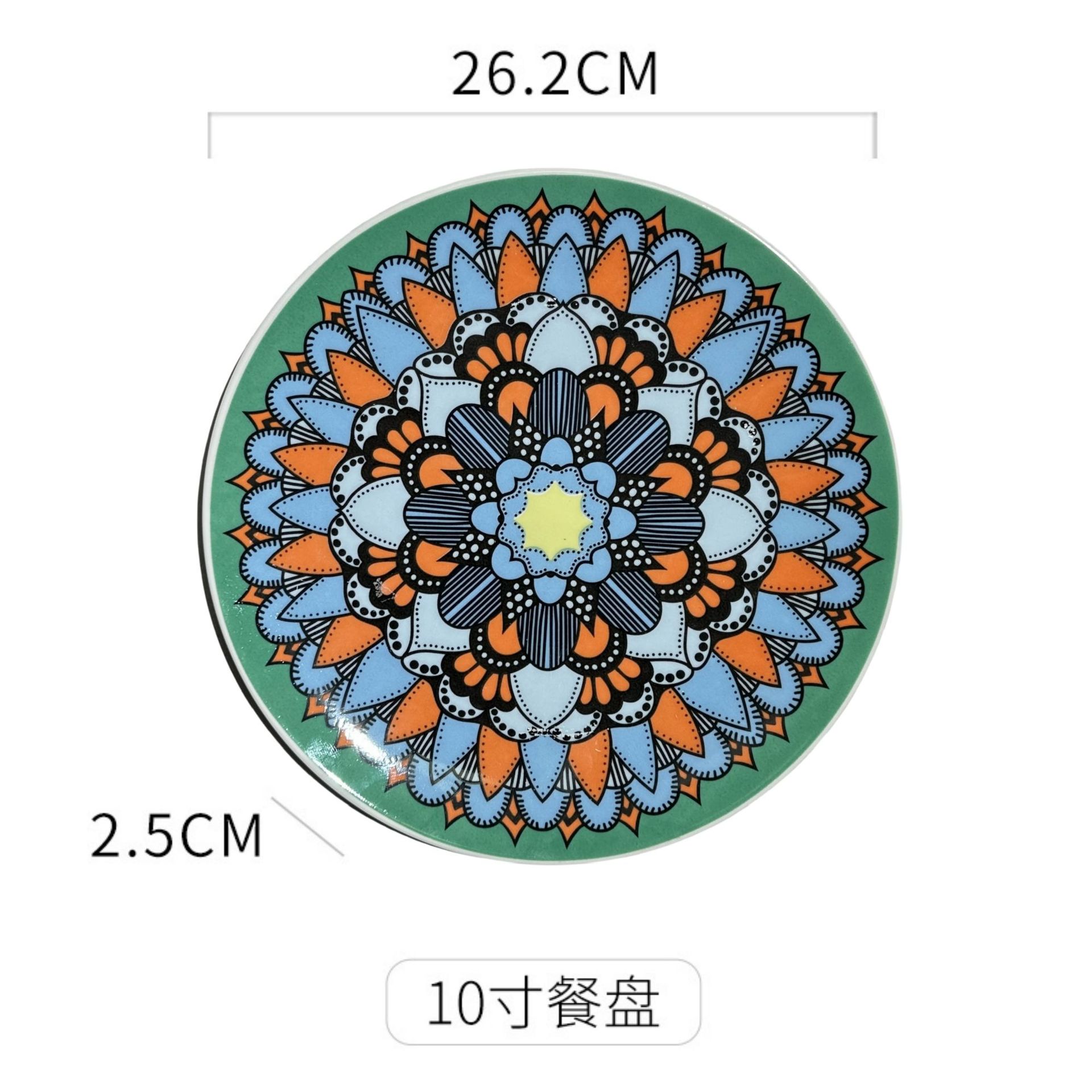 세라믹 가정용 식기 식기 일본계 미국인 딤섬 플랫 플레이트 보헤미안 스테이크 서양 음식 라운드 트레이