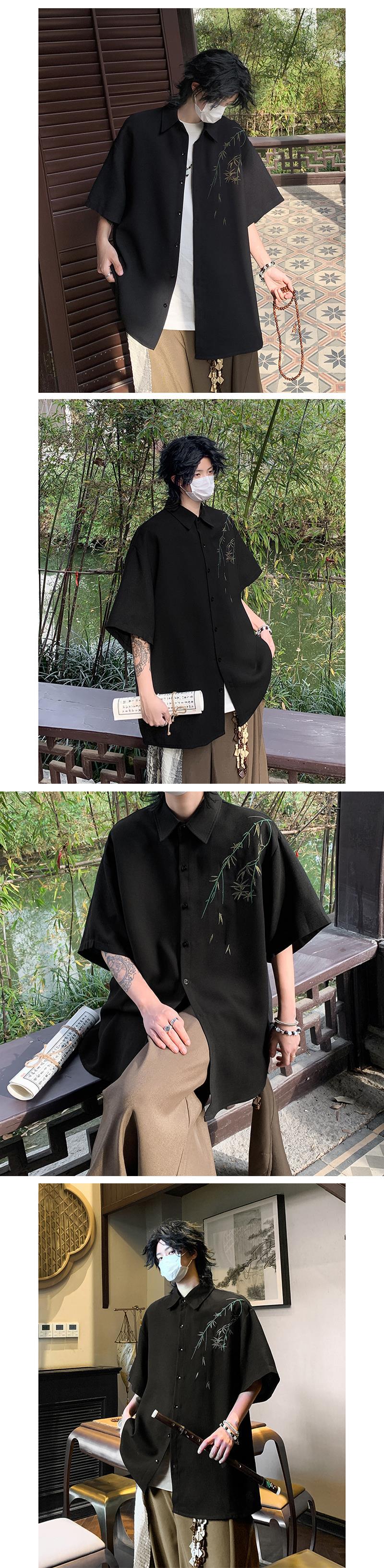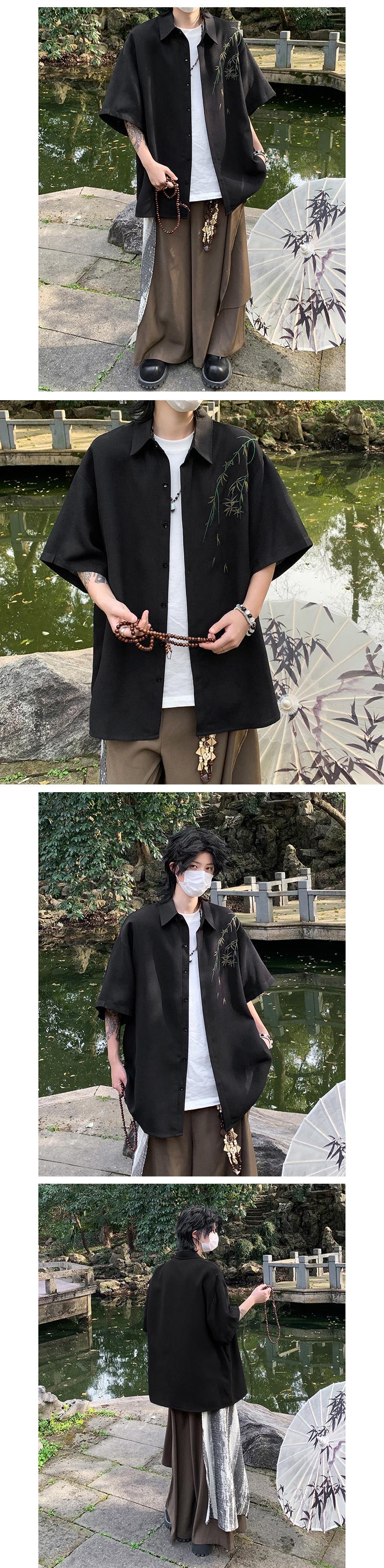 CNEW 중국 스타일 새로운 중국 스타일 붓 서예 버클 자수 술 반팔 셔츠 루즈 남성과 여성 같은 트렌드스토어 가기
