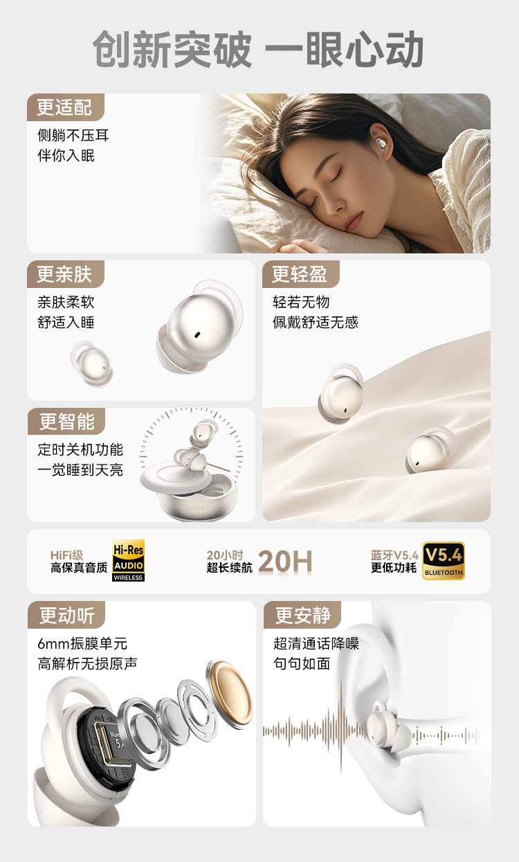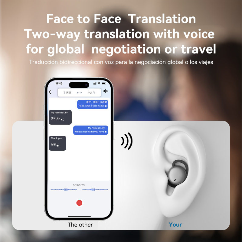 국경 간 폭발 AI 번역 수면 헤드셋 새로운 측면 수면 조명 무선 블루투스 미니 컴팩트 긴 수명 헤드셋