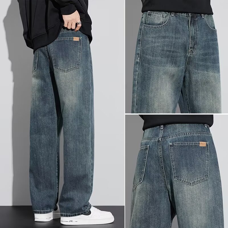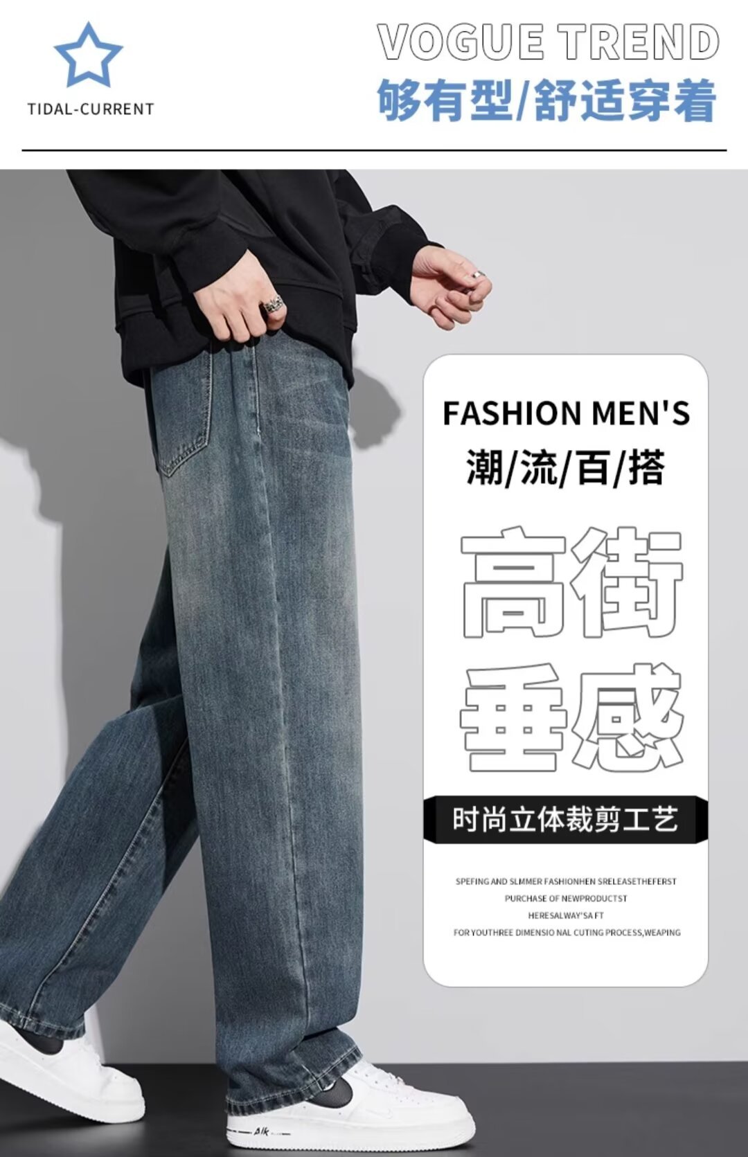 하이 퀄리티 레트로 청바지 남자의 봄과 가을 새로운 패션 브랜드 느슨한 넓은 다리 바지 모든 경기 스트레이트 바지 패션 바지