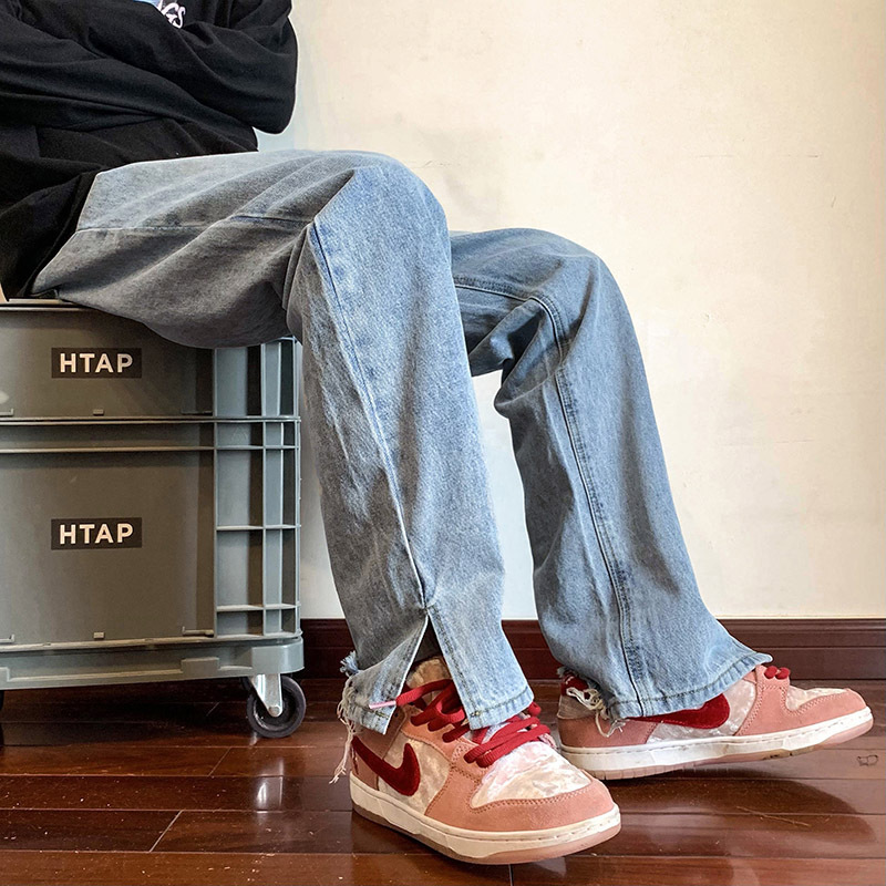 분할 청바지 남성 디자인 센스 틈새 넓은 다리 스트레이트 바지 여름 얇은 인스 타 그램 인기 브랜드 하이 스트리트 바지스토어 가기