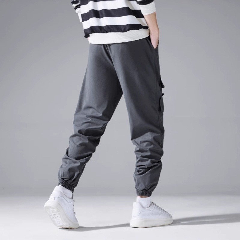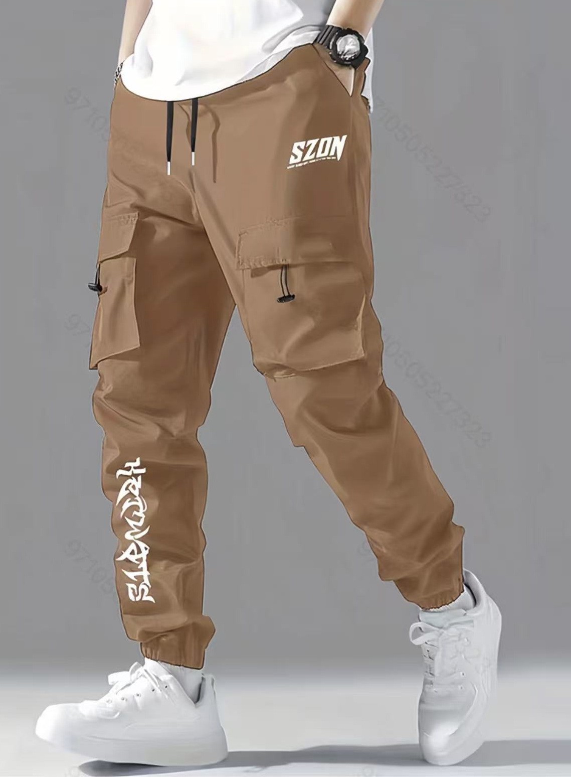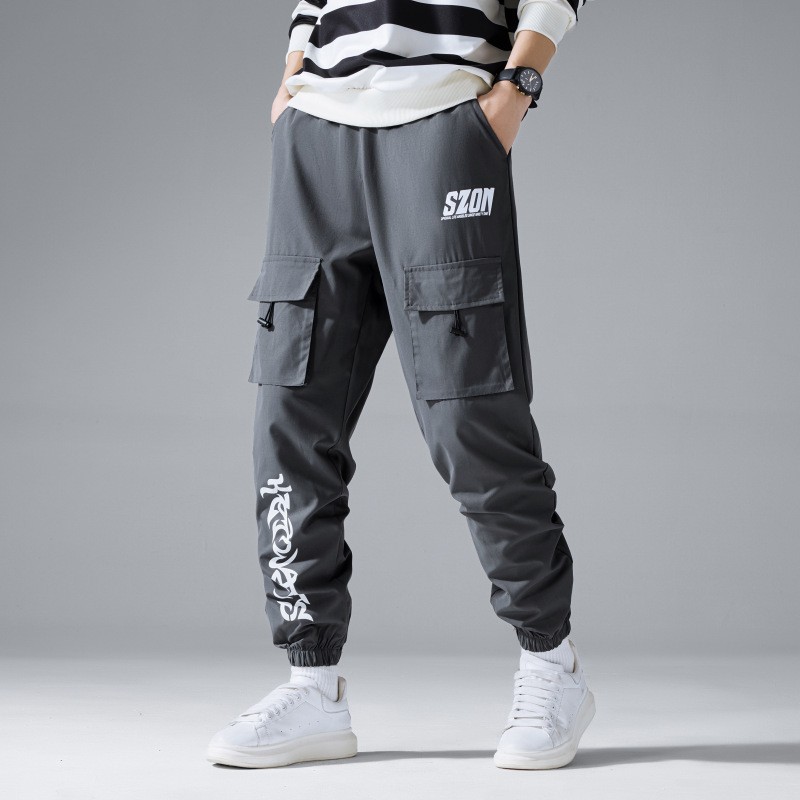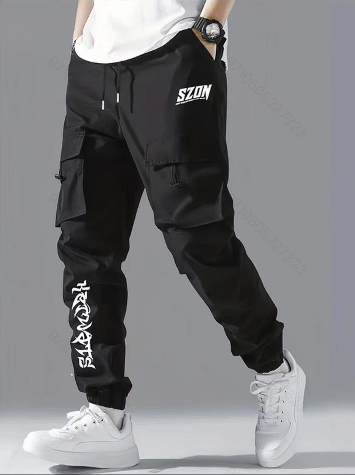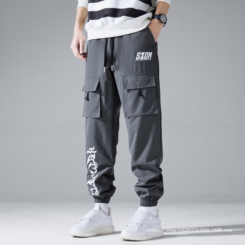 새로운 크로스보더 바지 남성용 미국 및 유럽 사이즈 프린트 루즈 캐주얼 바지 대외 무역 긴 바지 그레이 블랙 재고 있음