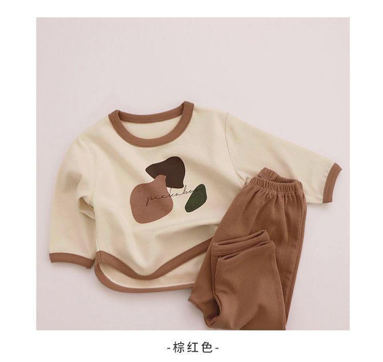 베이비 코튼 슈트 봄, 가을 기본 잠옷 아동복 남성 및 여성 베이비 가을 긴팔 스플릿 투피스 세트스토어 가기