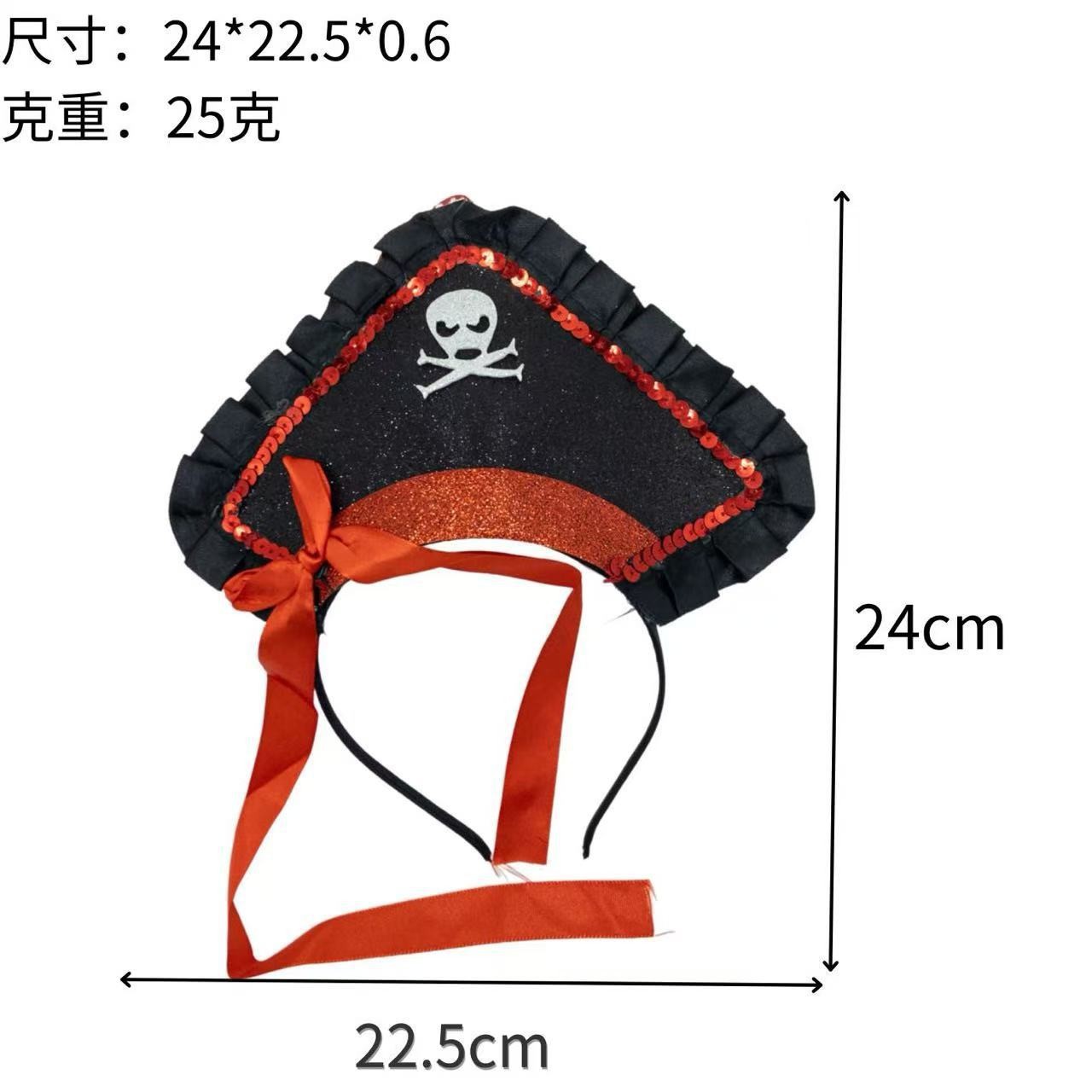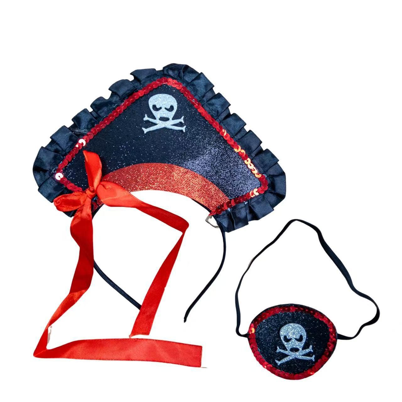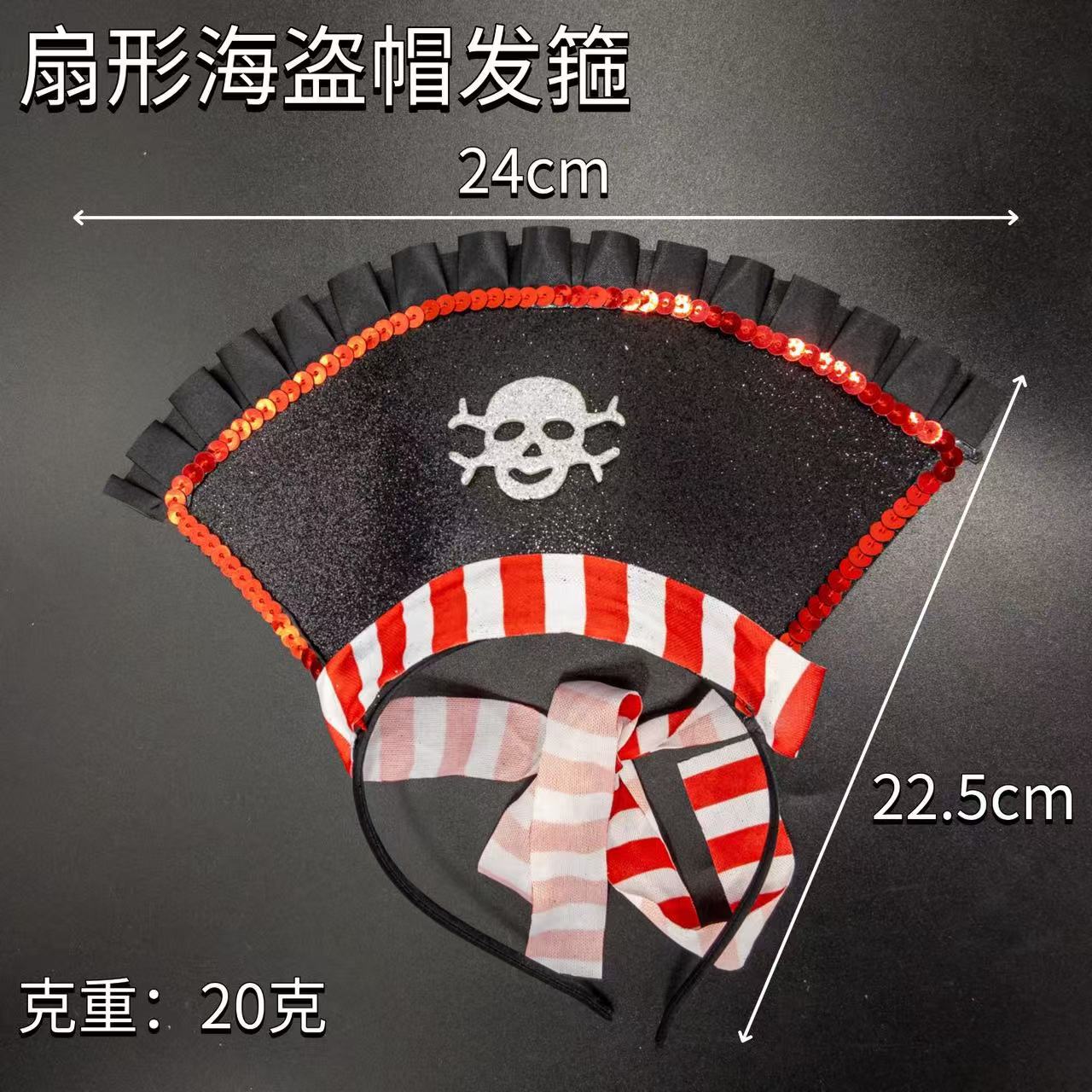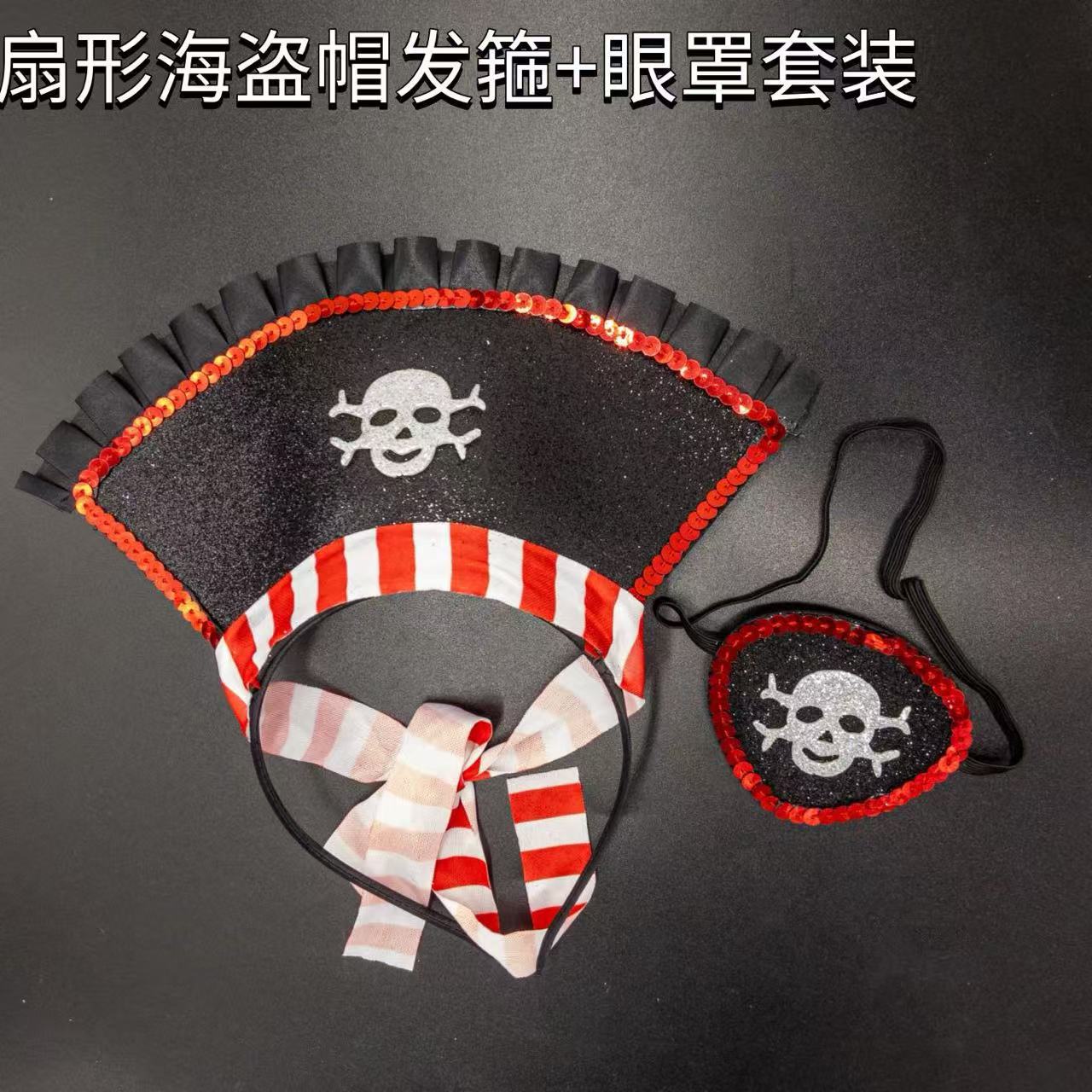 • 부채꼴 해적 모자 머리띠 + 뒷머리 해골 안대