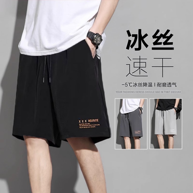 공장 재고 반바지 남성 여름 패션 브랜드 아이스 실크 바지 느슨한 통기성 캐주얼 대형 바지 스포츠 바지