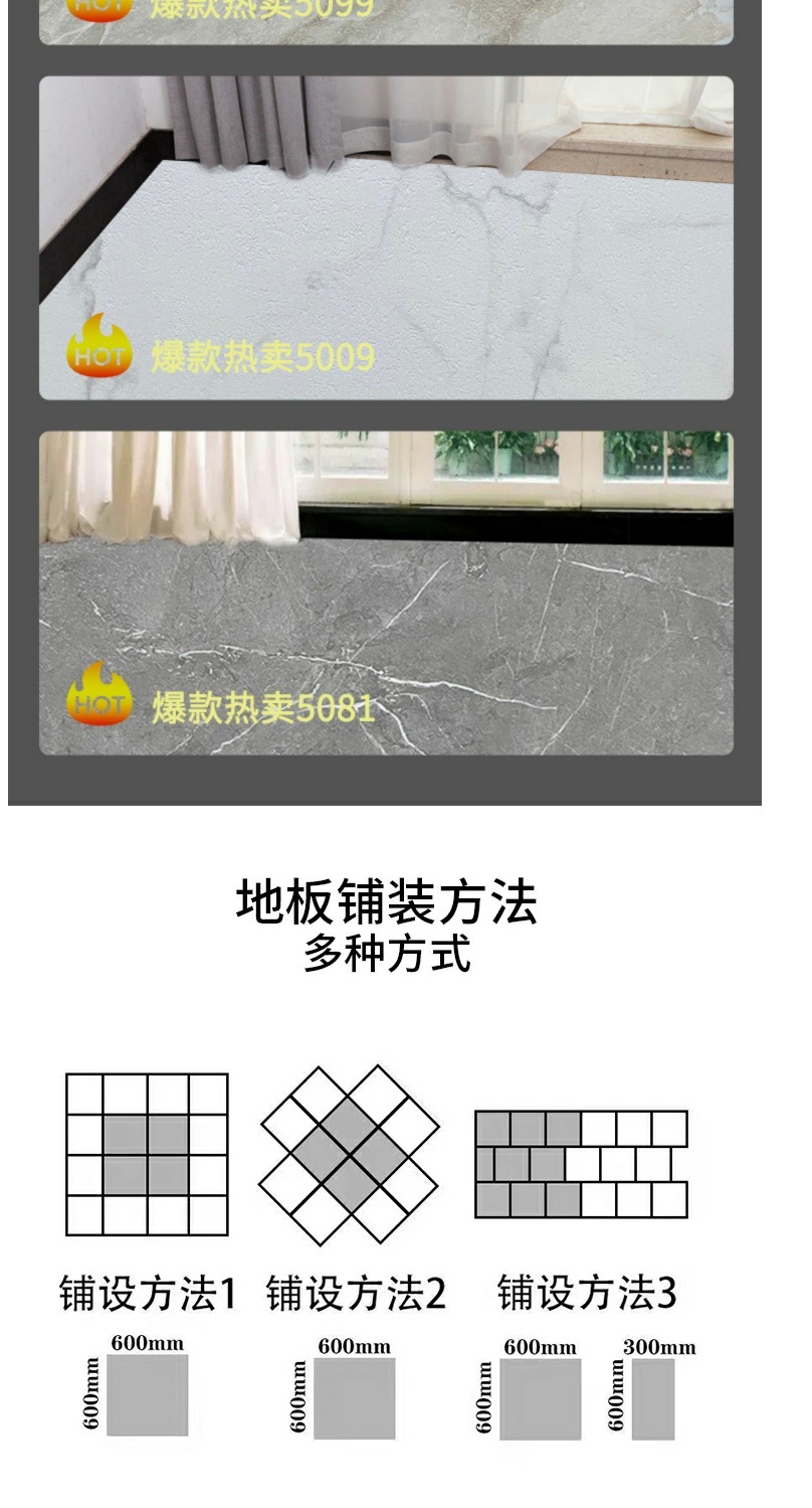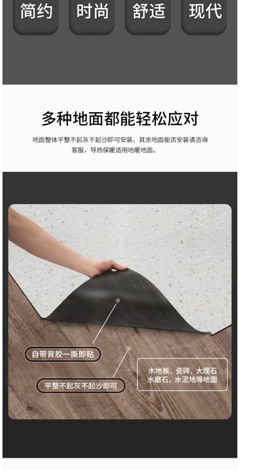 자체 접착 바닥 스티커 두꺼운 고광택 밝은 pvc 바닥 상업용 침실 바닥 가죽 시멘트 바닥 직접 도매스토어 가기