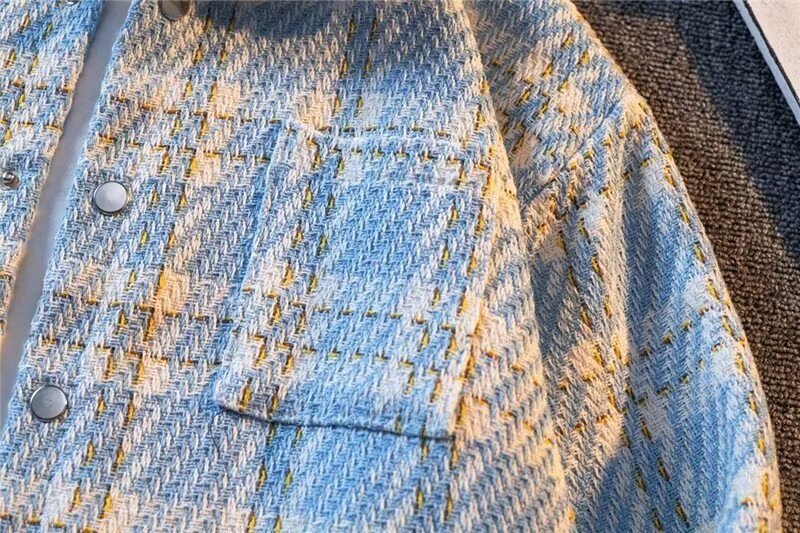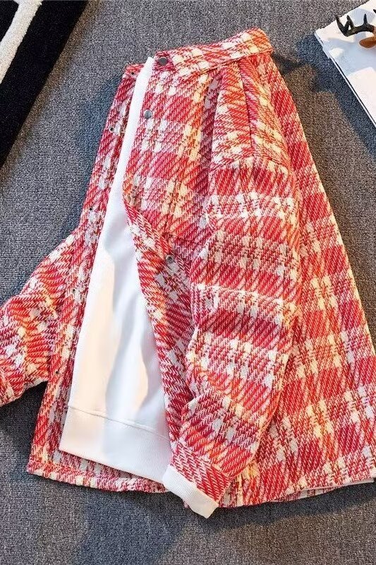 2024 남성 가을 작은 향기 느슨한 옷깃 셔츠 남성 다목적 패션 재킷 청소년 니트 격자 무늬 재킷스토어 가기