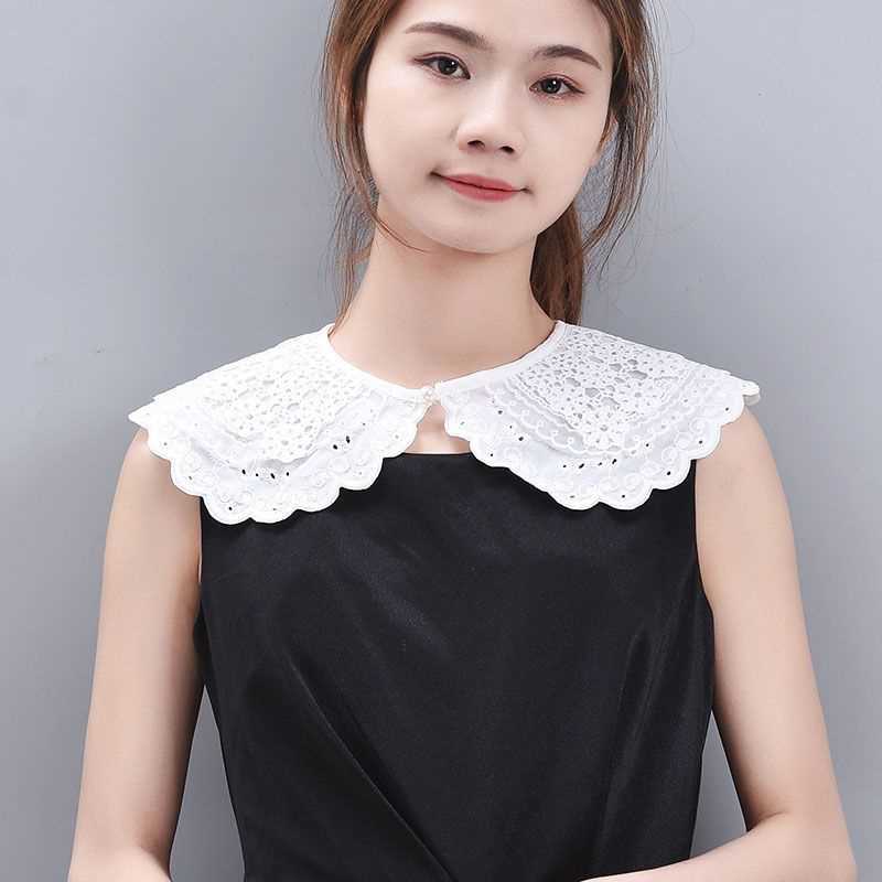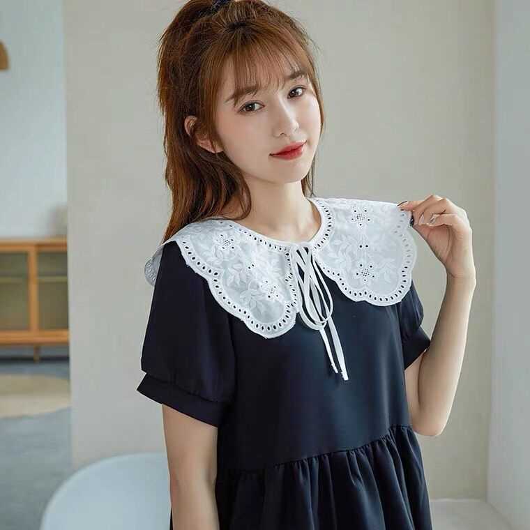 여름 원피스 작은 목도리 화이트 쉬폰 자수 인형 칼라 한국 올 매치 거짓 칼라 여자 레이스 장식 칼라