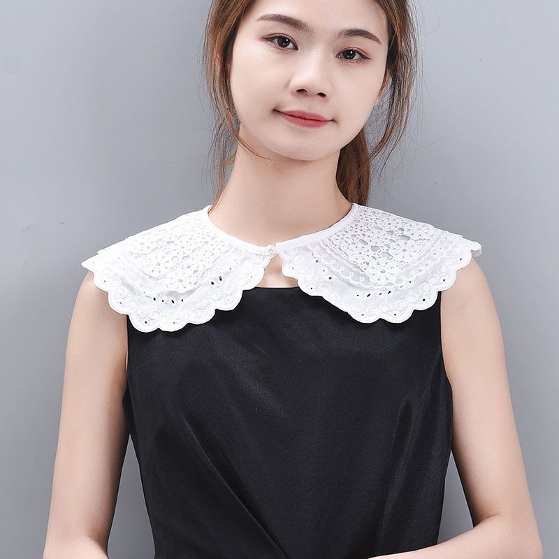여름 원피스 작은 목도리 화이트 쉬폰 자수 인형 칼라 한국 올 매치 거짓 칼라 여자 레이스 장식 칼라스토어 가기