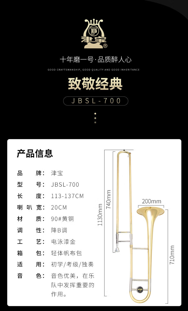 진 바오 트롬본 악기 JBSL-700 드롭 B 바니시 골드 웨스턴 황동 악기 전문 성능 테스트 밴드 패스스토어 가기