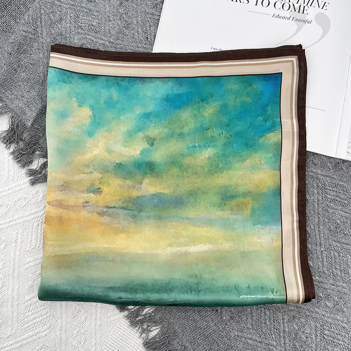 일몰 유화 기질 고급 실크 스카프 모든 경기 53cm 작은 광장 스카프 여름 선 스크린 스카프 도매