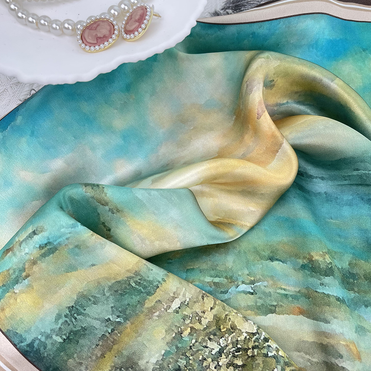 일몰 유화 기질 고급 실크 스카프 모든 경기 53cm 작은 광장 스카프 여름 선 스크린 스카프 도매스토어 가기